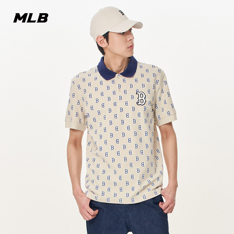 MLB官方 男款时尚休闲满印老花POLO短袖T恤休闲夏季PQM02/PQM01