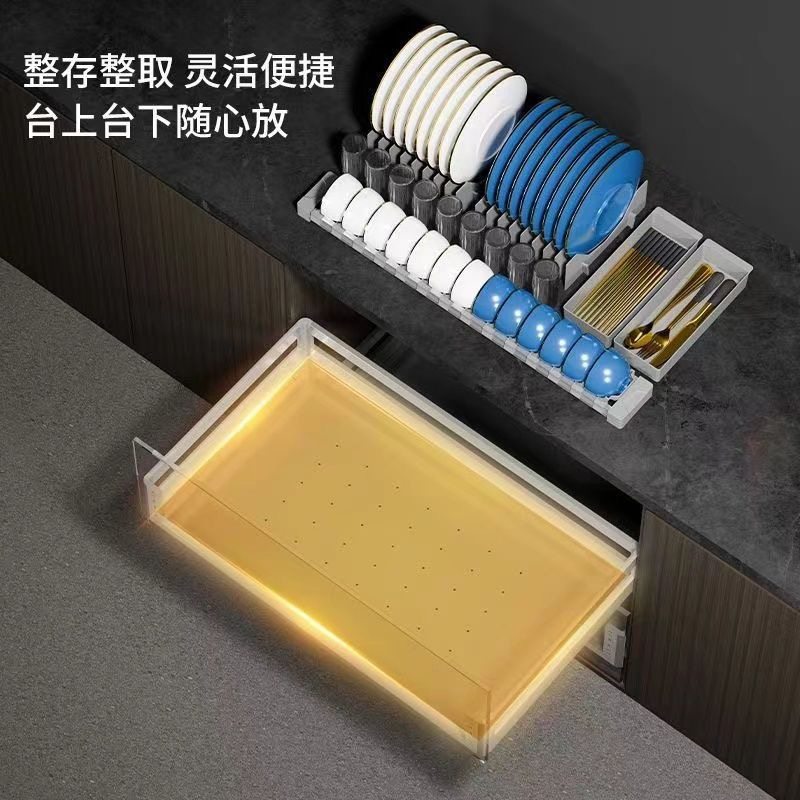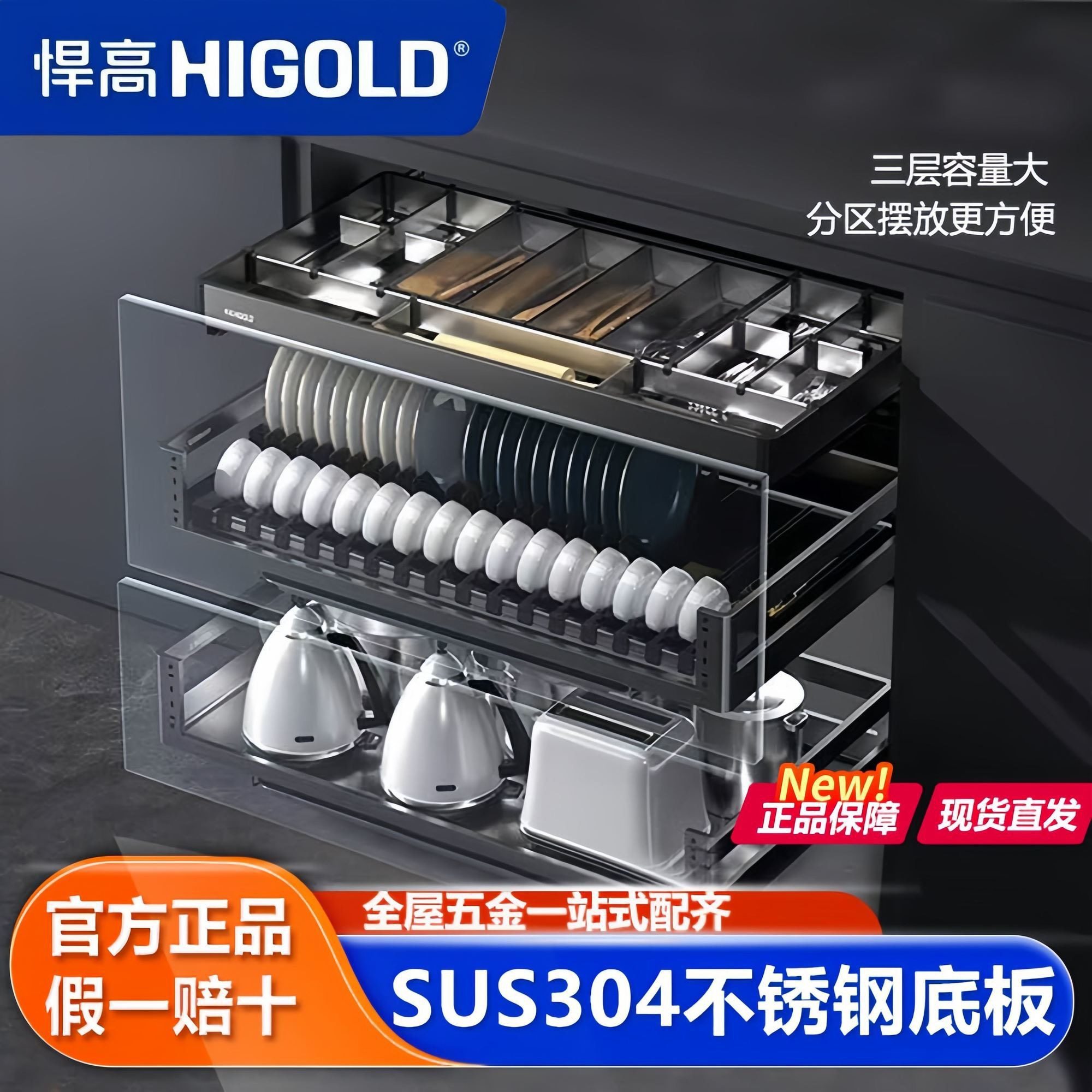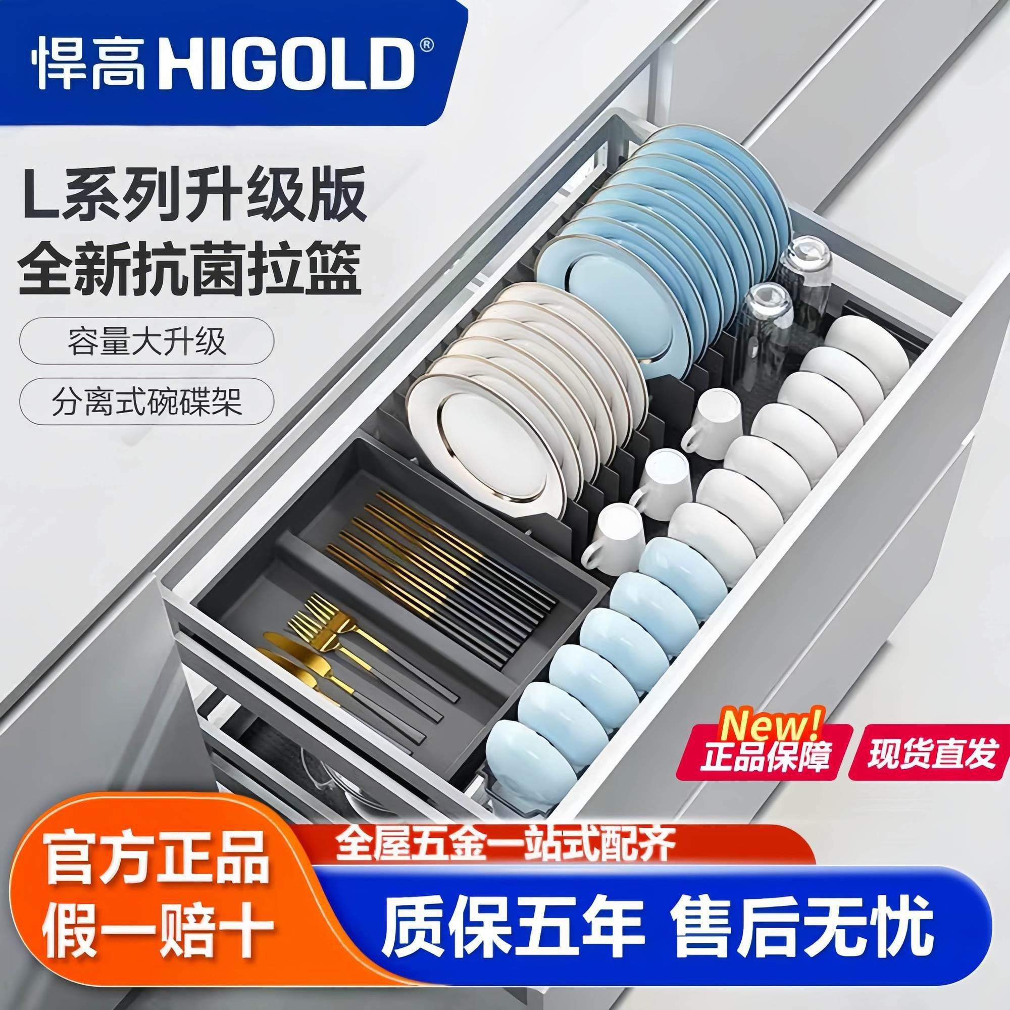 悍高拉篮厨房拉篮L系列加厚304不锈钢碗碟抽屉式家用橱柜双层碗篮