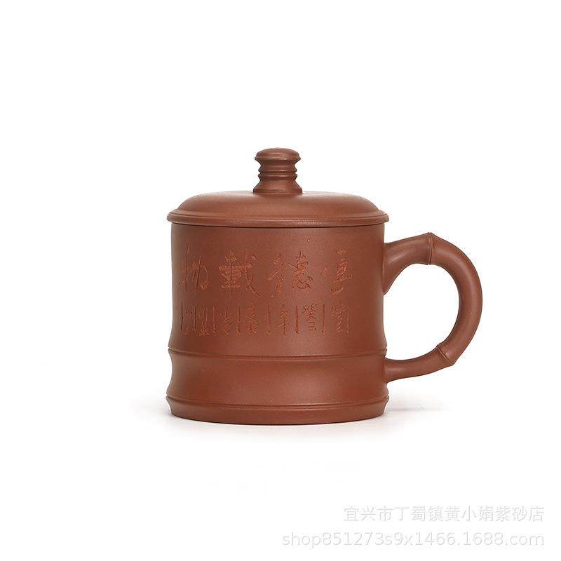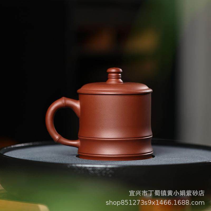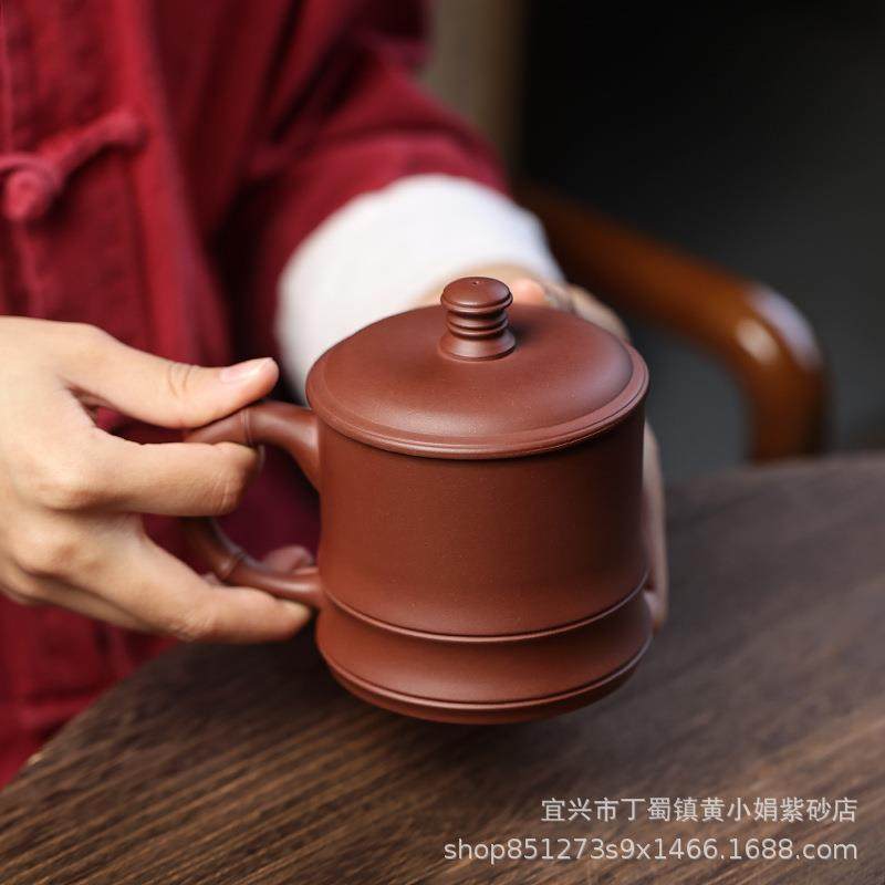 宜兴紫砂杯泡茶杯盖杯办公杯直销正宗原矿紫泥手工厚德竹节杯