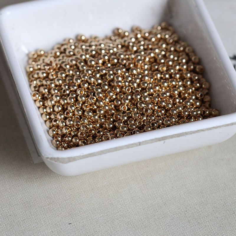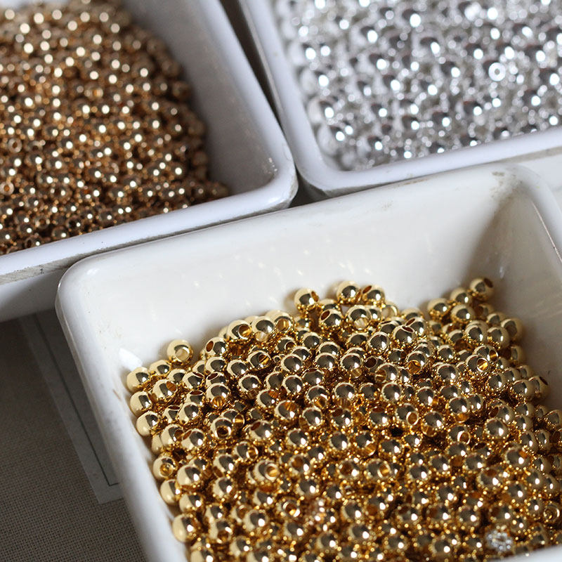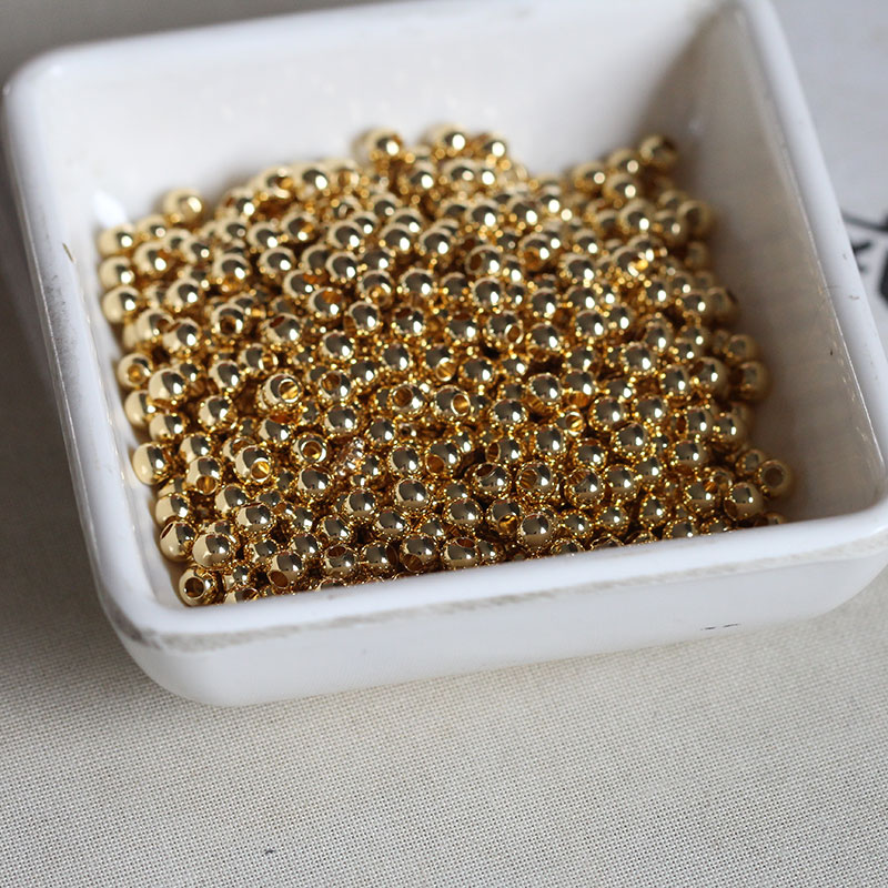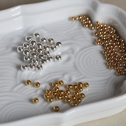 耳坠发簪DIY手链项链配件*黄铜镀保色24K金光珠镀银色圆隔珠流苏