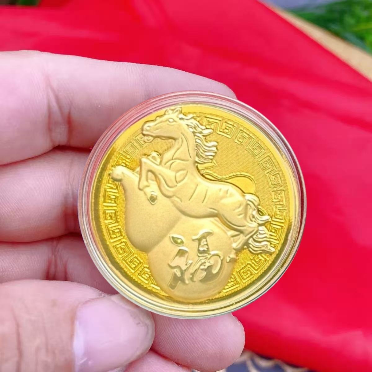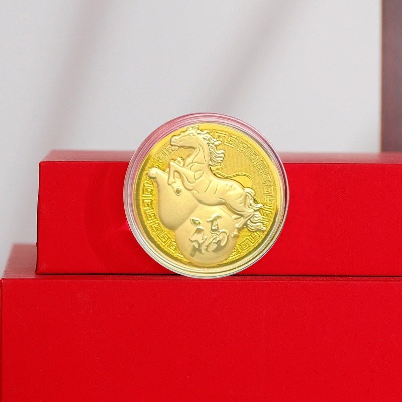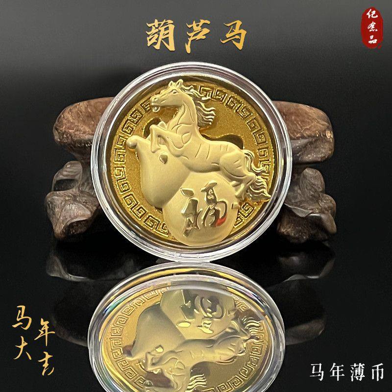 新品上市创意薄款仿金箔金色卡通葫芦马币新年福运满满纪念币摆件