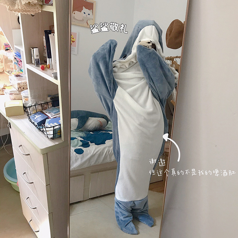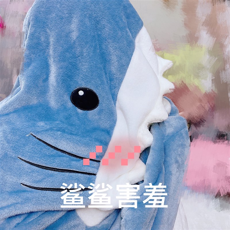 仲花家日式沙雕鲨鱼睡袋睡衣办公室午睡毯子儿童单人宿舍法兰绒