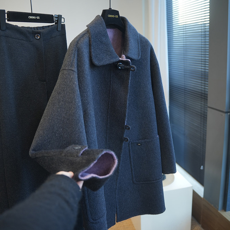 福利款!25秋冬新款羊毛羊绒翻领双面呢中长款大衣女毛呢外套A82H