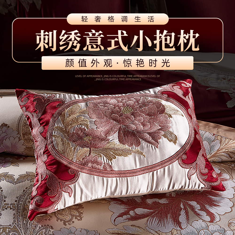 思辰家纺婚庆四件套结婚床品高档牡丹刺绣贡缎提花欧式婚嫁别墅