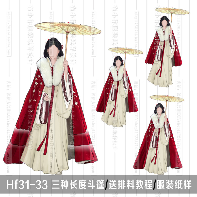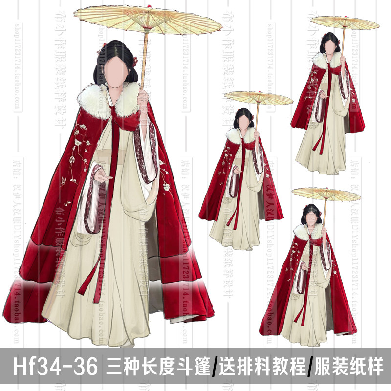 1:1实物纸样 汉元素斗篷秋冬服装制版 披风汉服汉伊人汉服手工diy