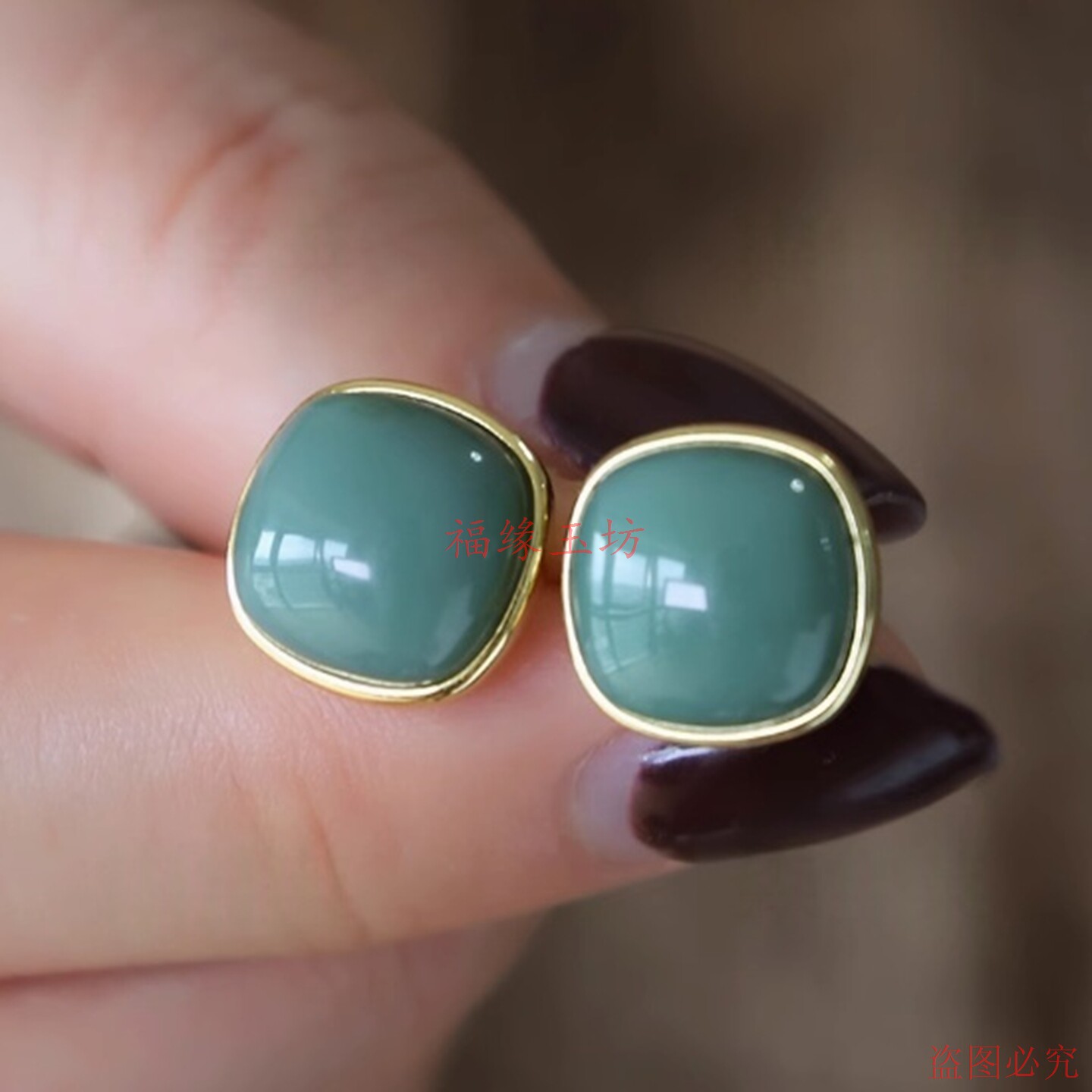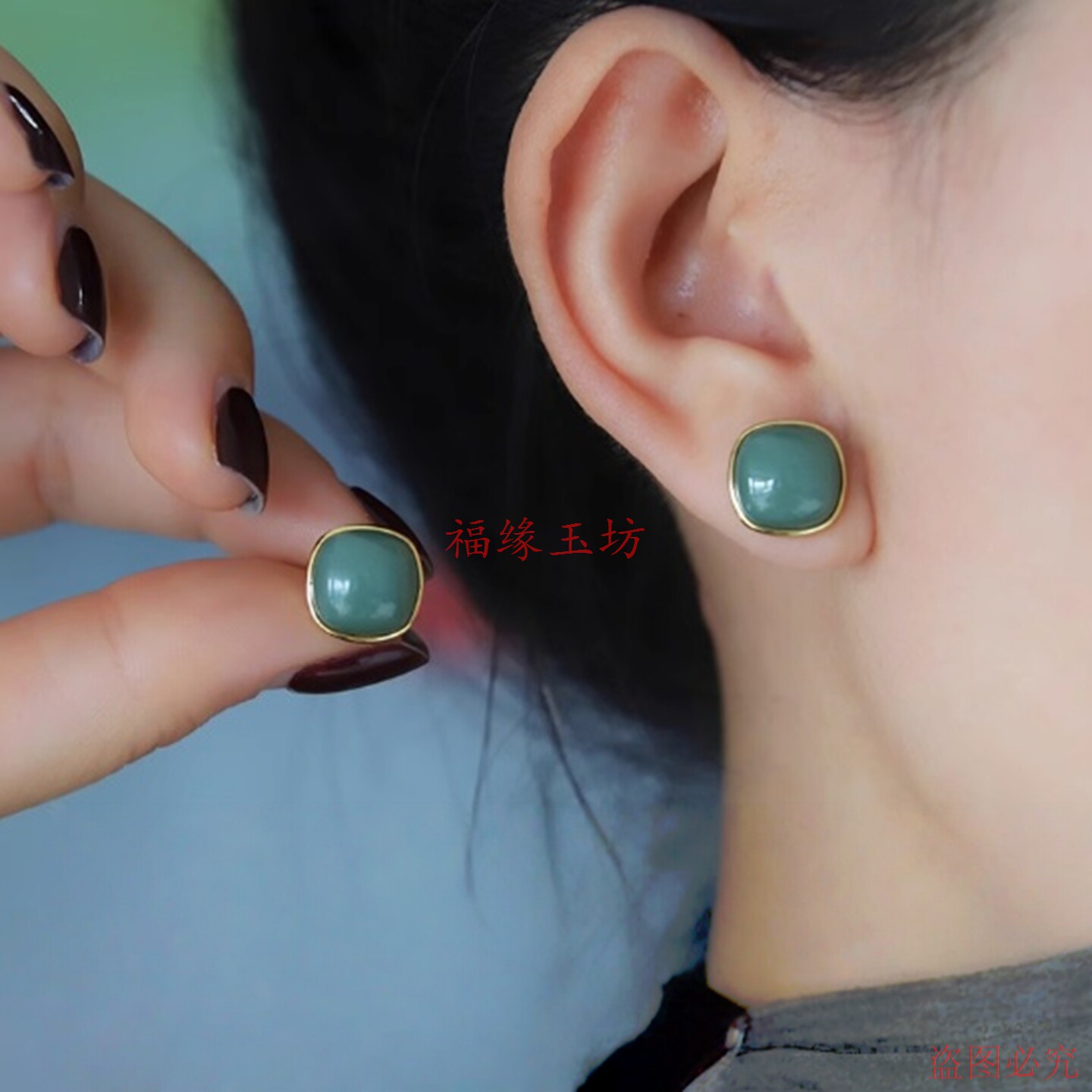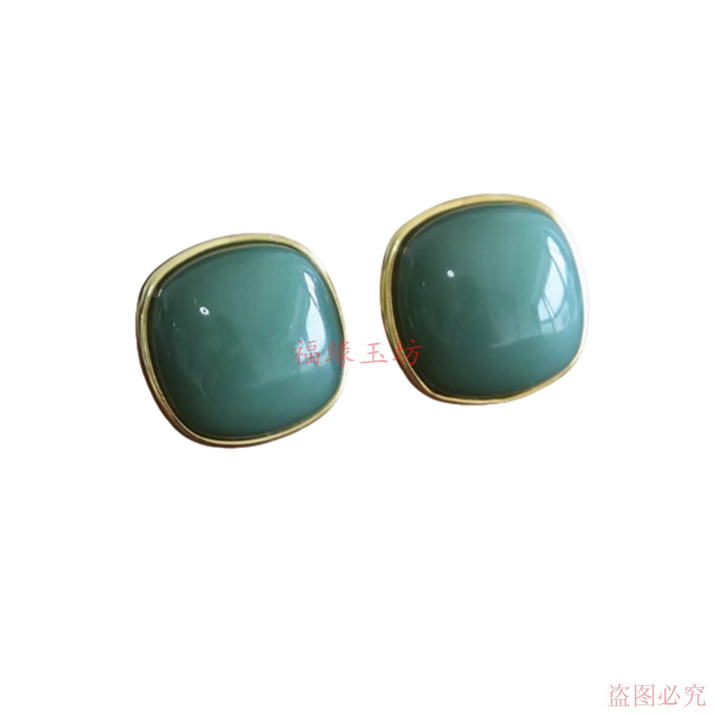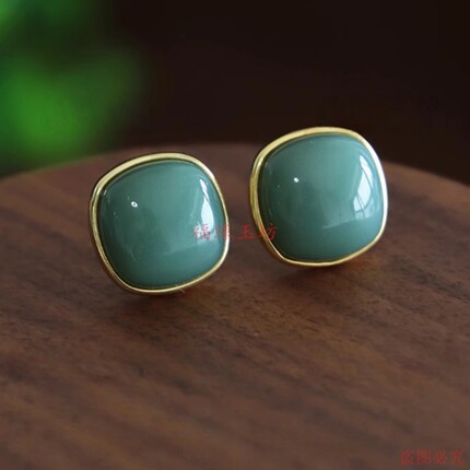 鸭蛋青和田碧玉方糖耳钉