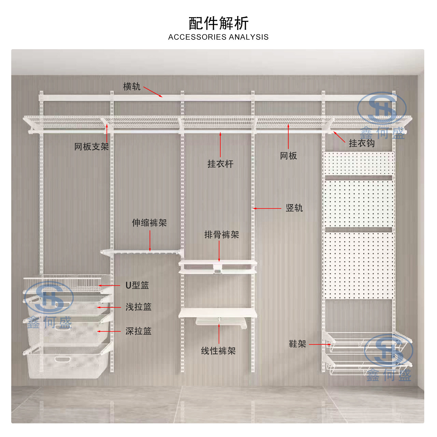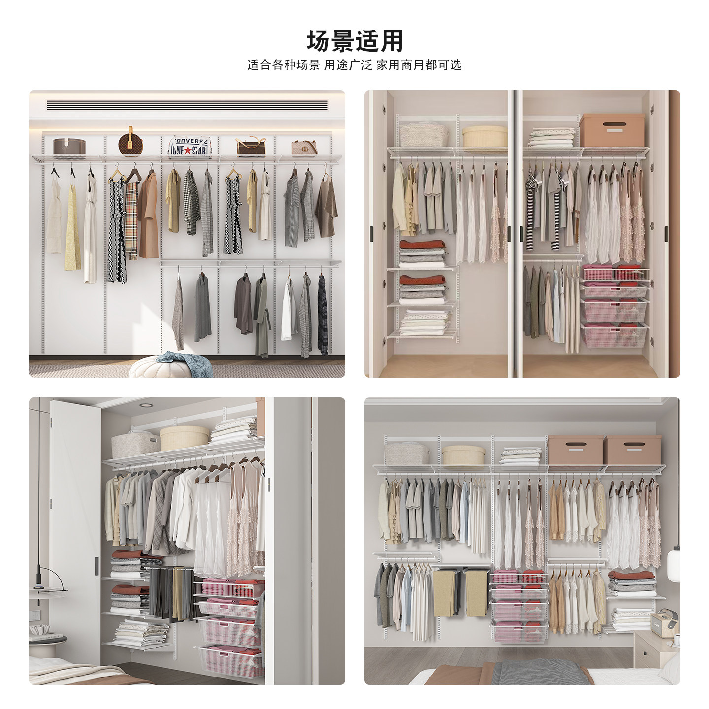 金属衣柜配件总汇开放式金属衣柜步入式衣帽间a柱上墙白色裤架