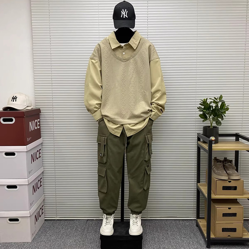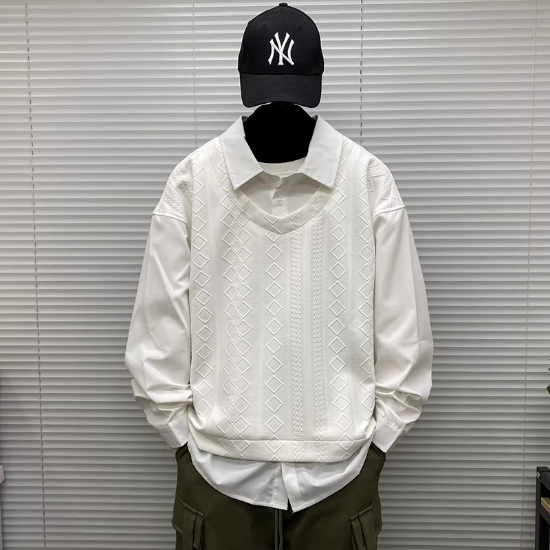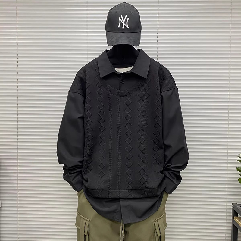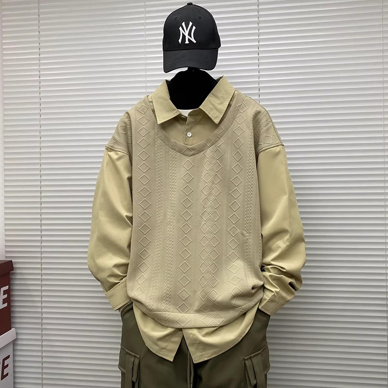 特大码300斤假两件拼接衬衫男女春秋新款oversize设计感衬衣外套
