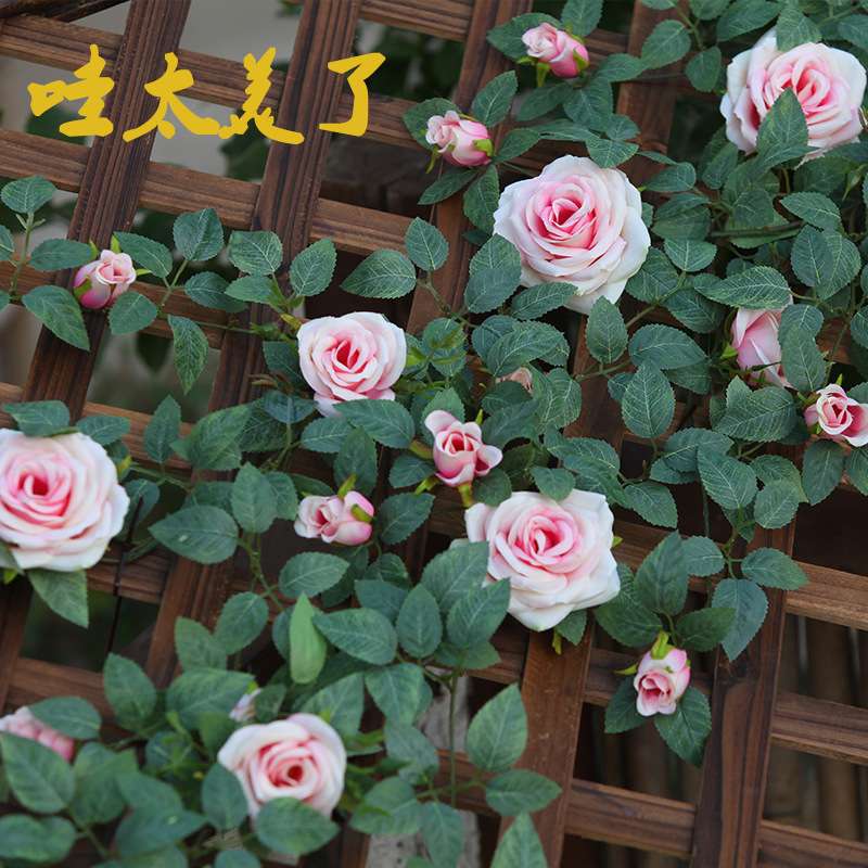 仿真玫瑰花塑料藤蔓客厅室内阳台空调管道装饰假花藤条墙壁挂绿植