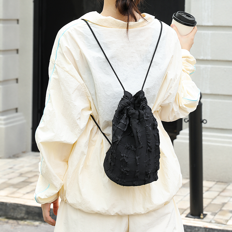 双肩包小众设计抽绳水桶背包