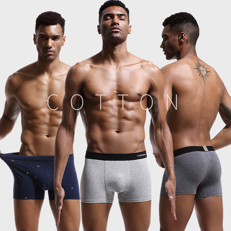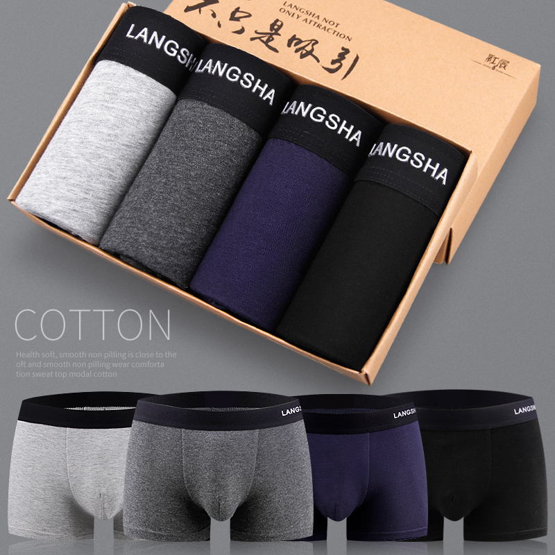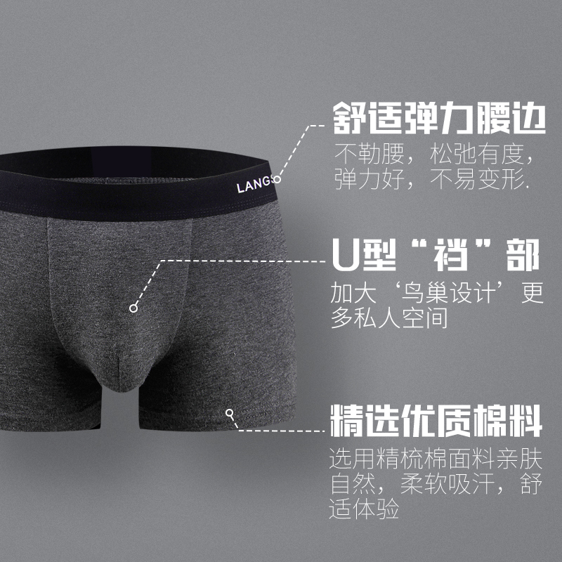 浪莎男士内裤男平角裤纯棉青年潮韩版个性男式宽松透气运动四角裤