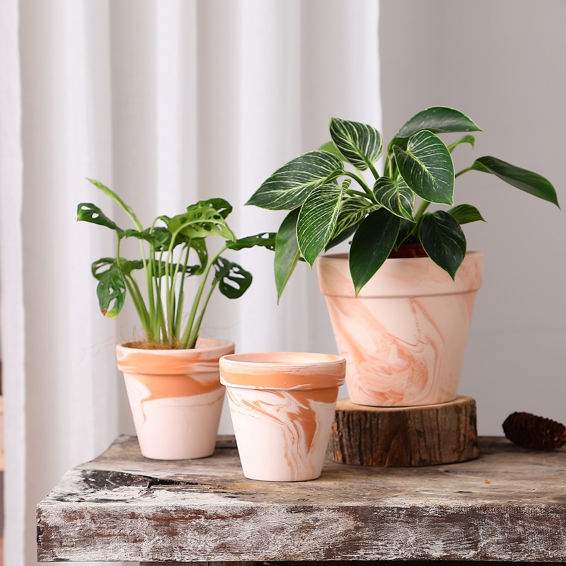 窑变色焦糖玛奇朵红白陶花盆素烧透气北欧简约绿植多肉盆带托盘