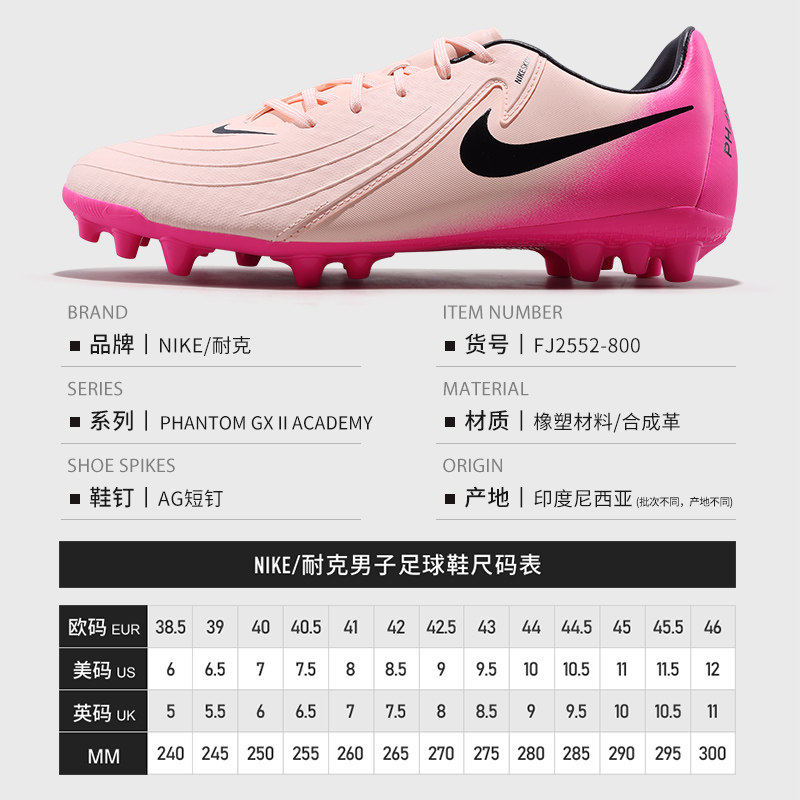 Nike耐克暗煞PHANTOM GX2中端AG短钉人草足球鞋男成人FJ2552-800