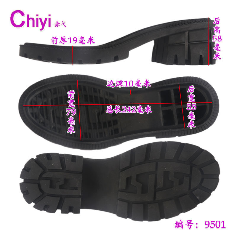 女款高端马丁靴橡胶鞋底防滑底胶粘冬季短靴厚底修鞋材料手工9501