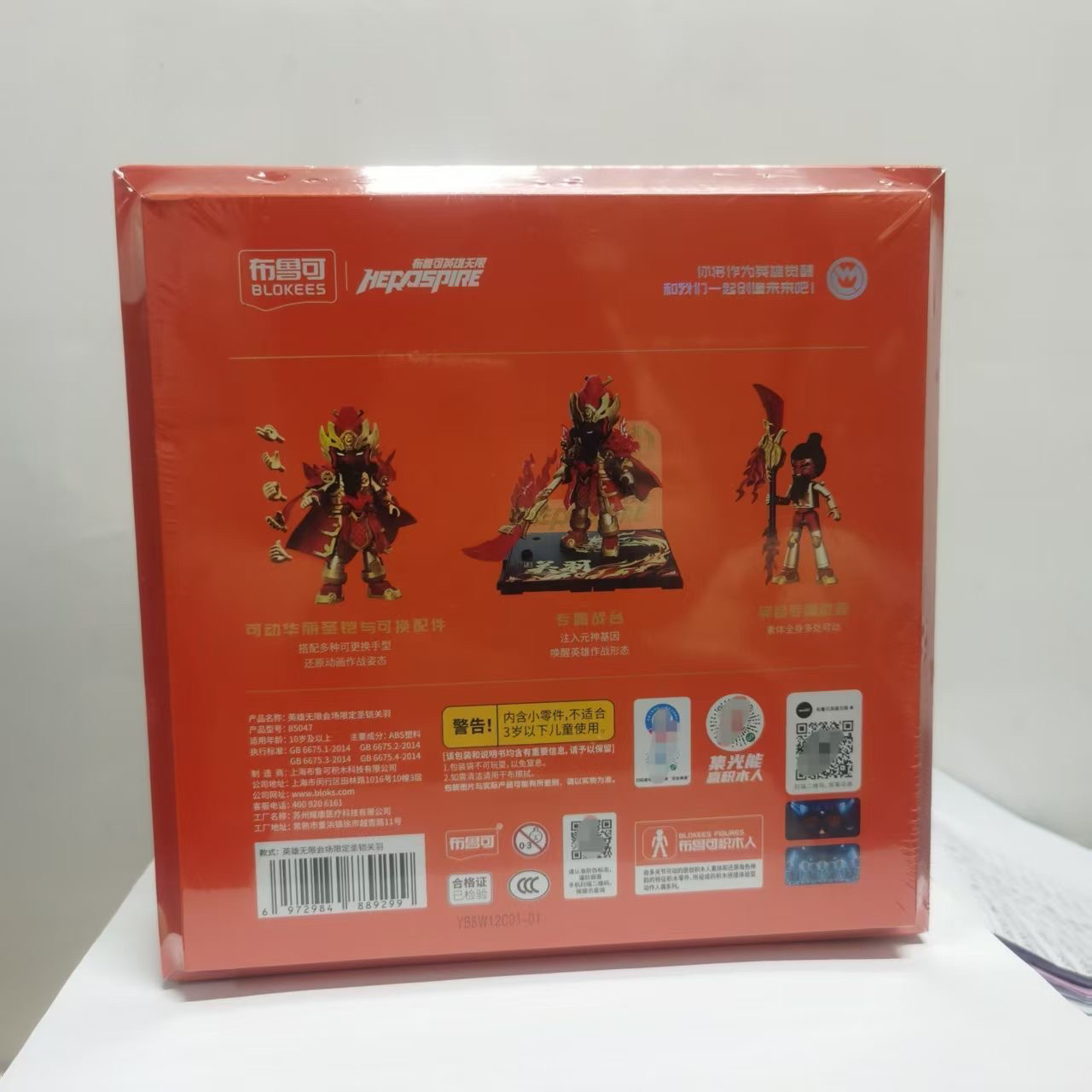 布鲁可英雄无限积木人会场限定圣铠关羽红色武财神拼装人偶套装