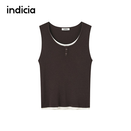 indicia标记商场同款2025秋新撞色假两件设计针织背心F2C5BX409C