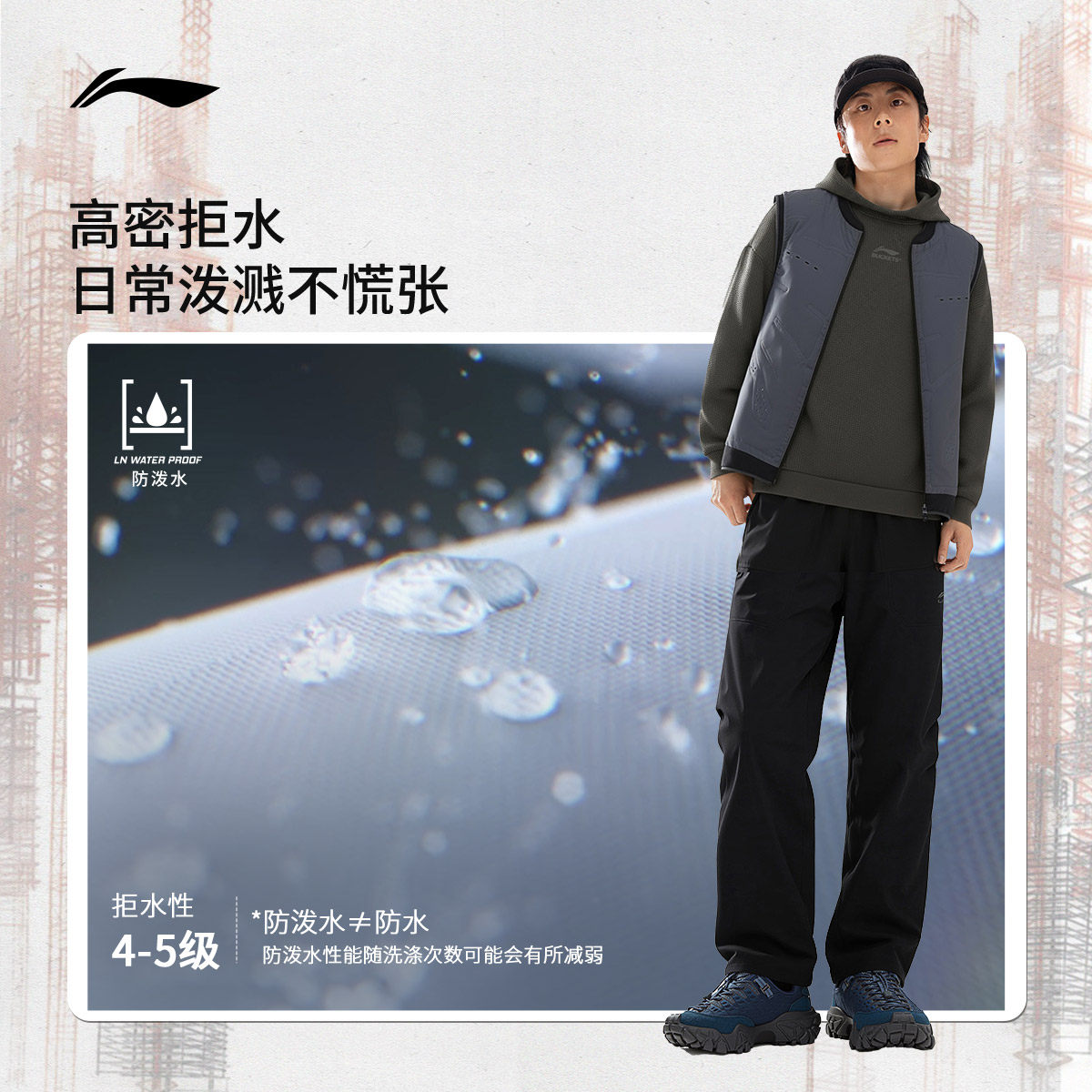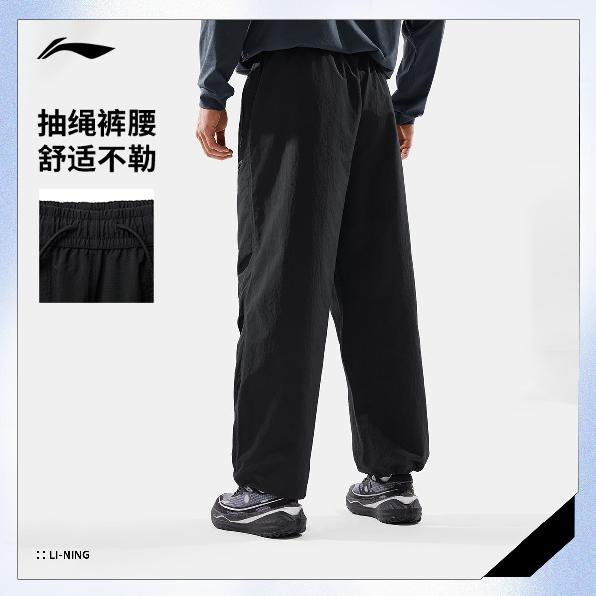 李宁防泼水伞兵裤|宽松运动裤男