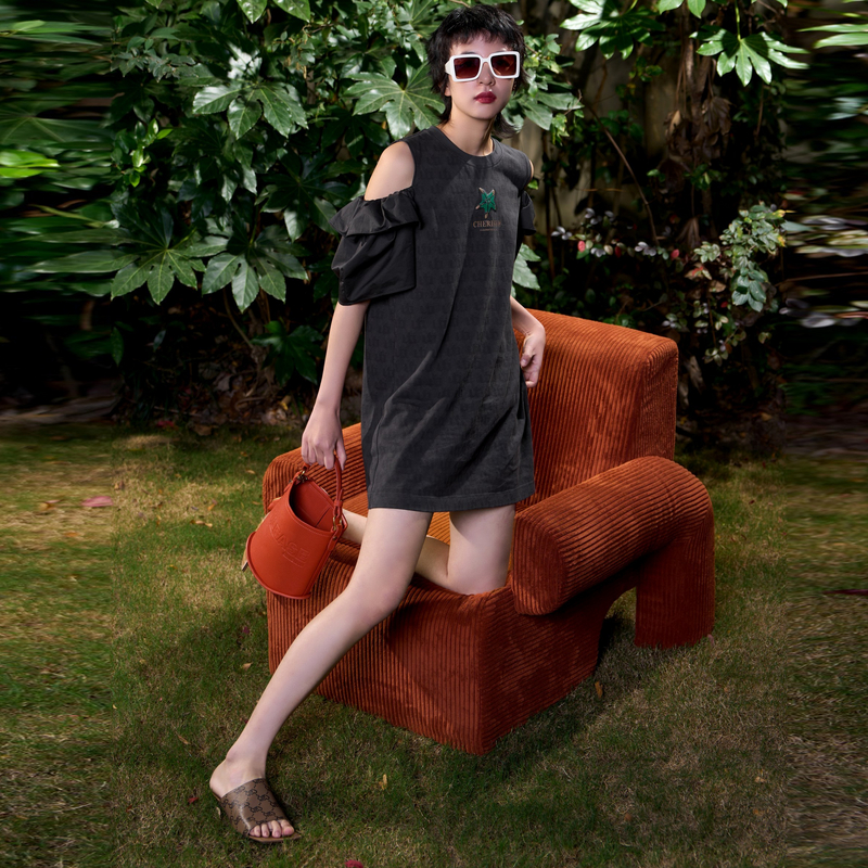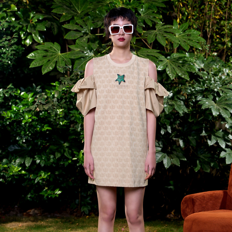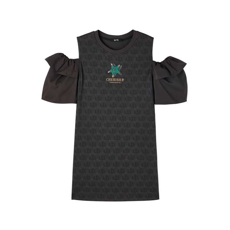 U/TI深灰色创意海星T恤裙女 百搭露肩挺阔连衣裙尤缇时尚夏季新款