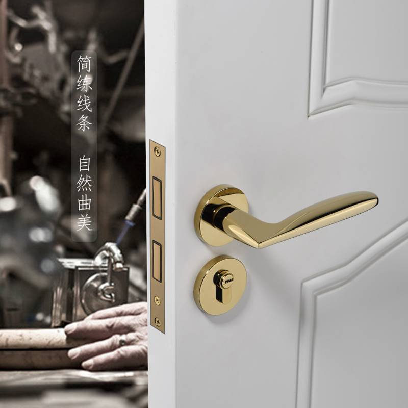 金色门锁室内卧室房门锁轻奢分体门锁磁吸静音门把手家用木门锁具