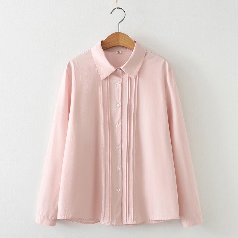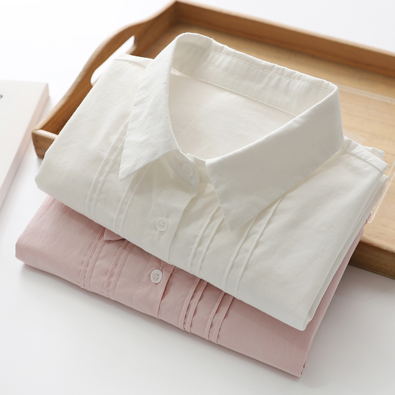 开衫长袖风琴褶白色纯棉衬衫