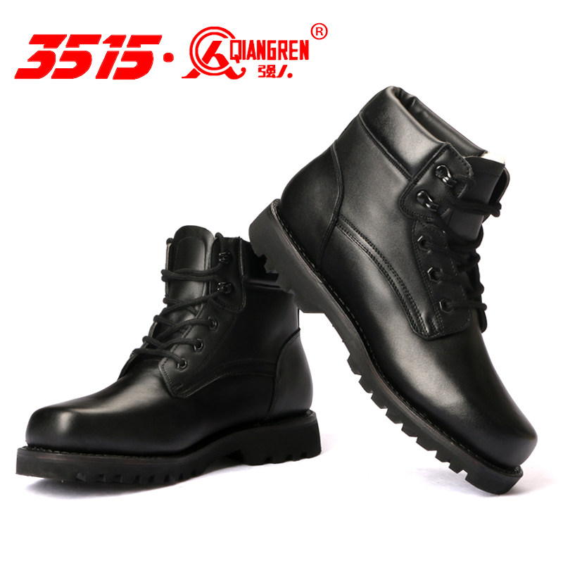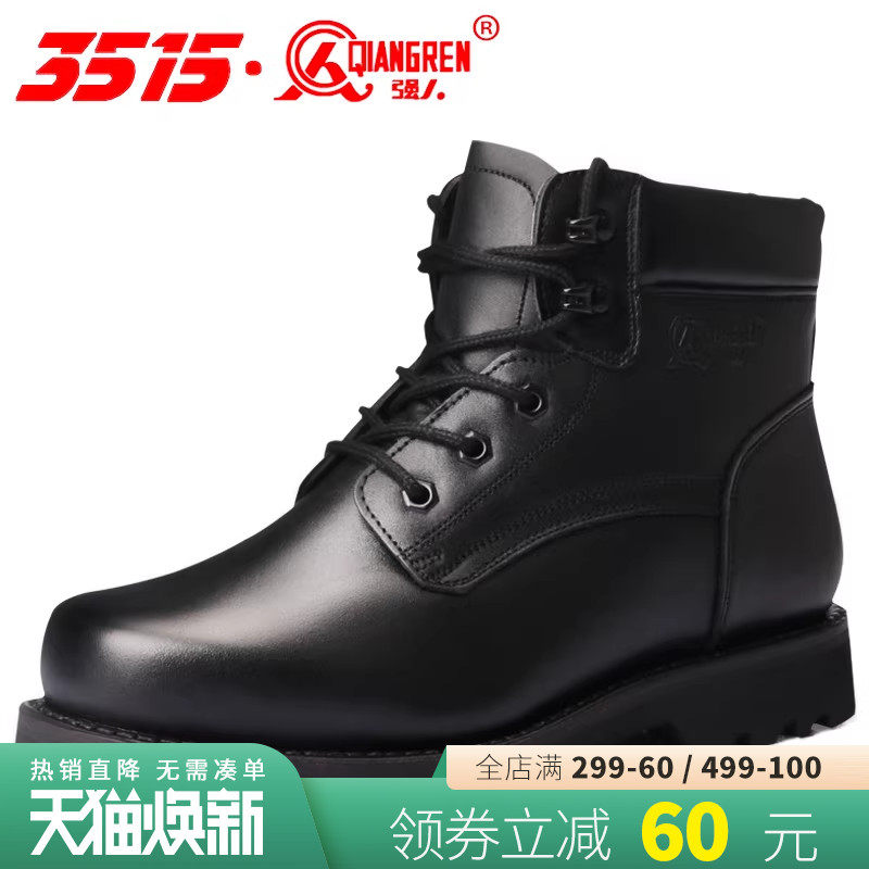 3515强人冬季男士真皮羊毛靴加绒保暖高帮棉鞋皮毛一体训练短靴子