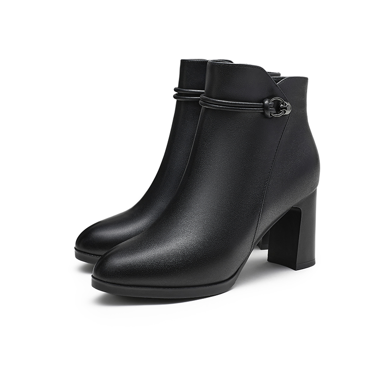 红蜻蜓冬季真皮女靴新款加绒短靴棉鞋妈妈鞋高跟女鞋粗跟断码清仓