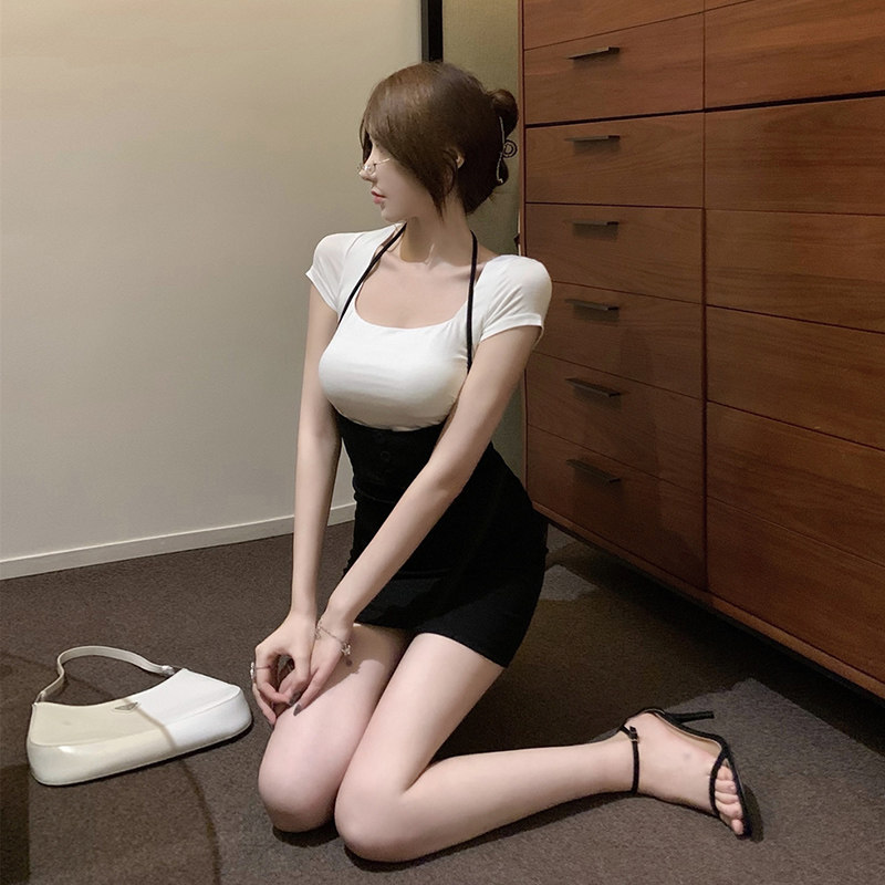 甜辣妹气质学院套装女装两件套背带裙包臀修身性感吊带连衣裙夏季