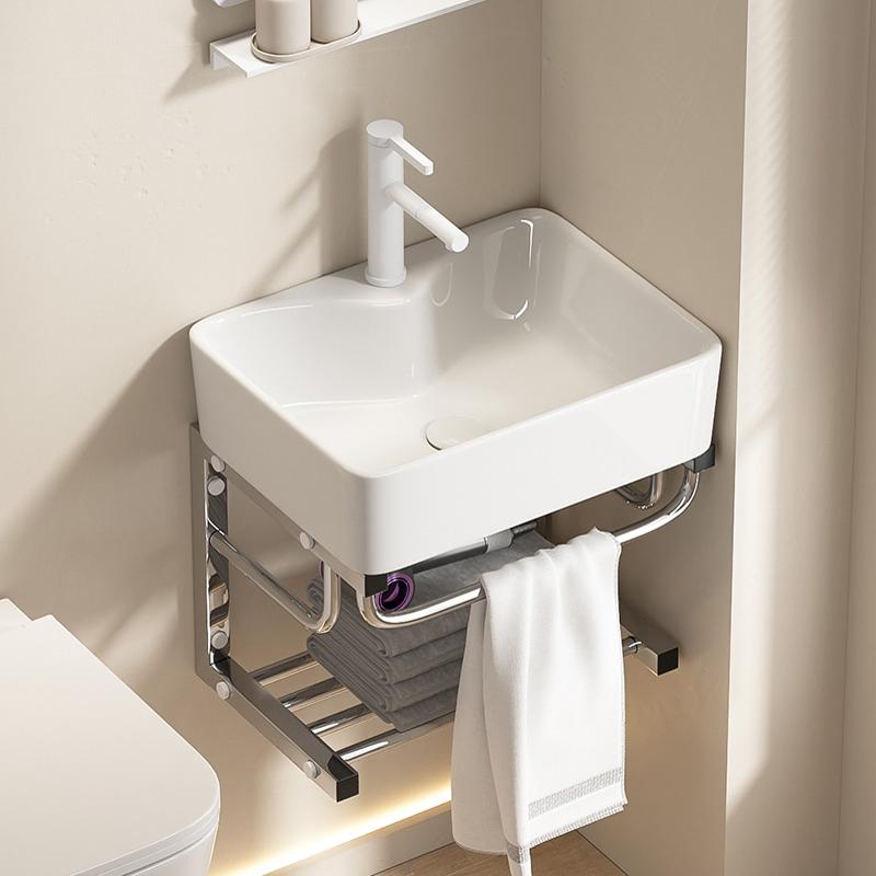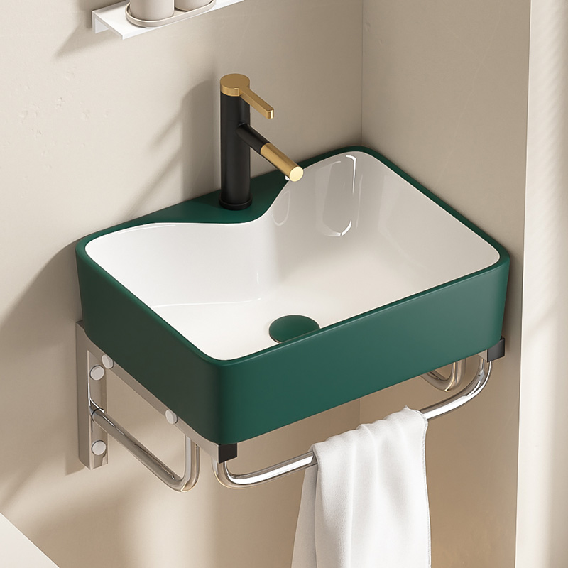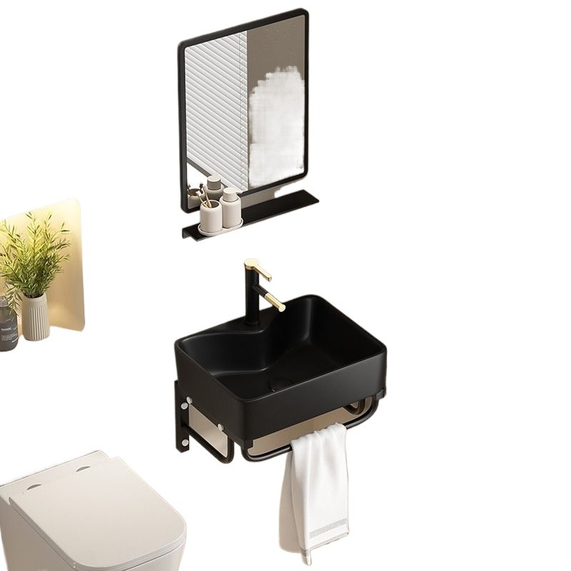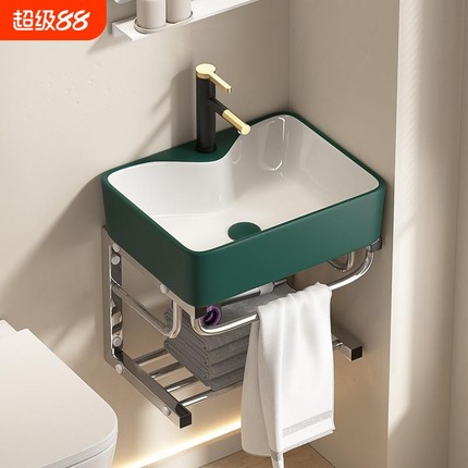 小户形挂墙式墨绿色陶瓷洗手盆不锈钢支架壁挂洗脸面卫生间水池子