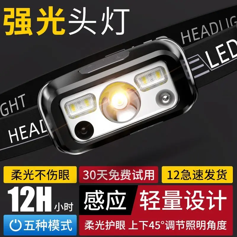 挥手感应三光源白光红光头灯超亮夜钓鱼可充电户外家用轻便头戴式