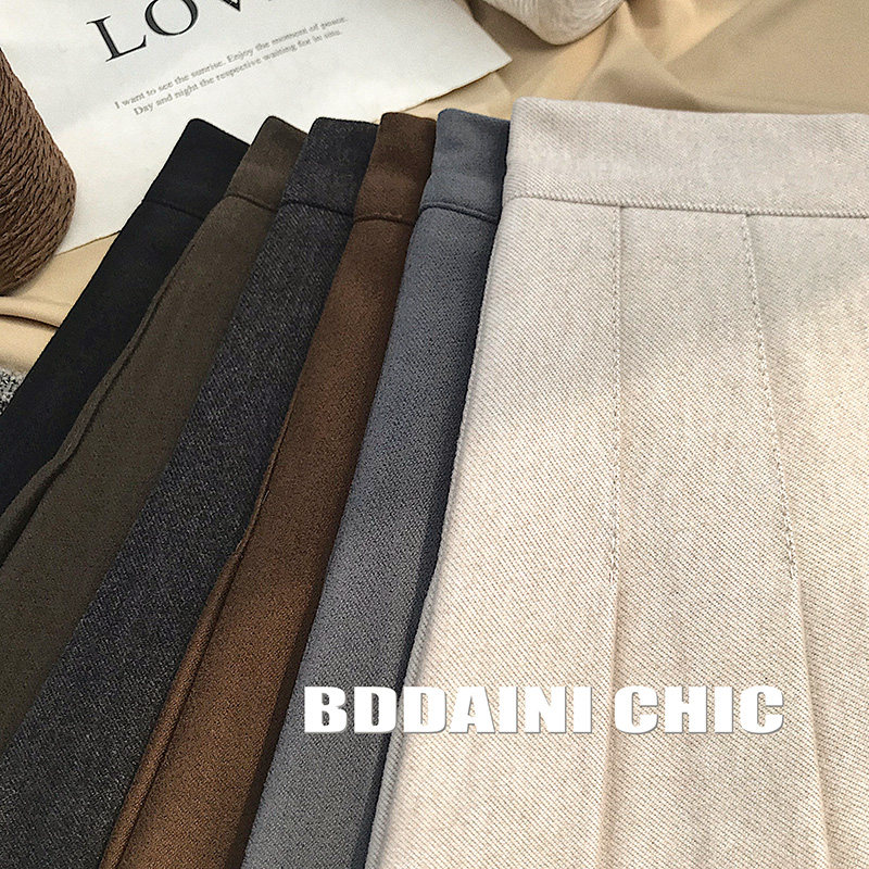 毛呢百褶裙女夏季2025新款高腰呢子显瘦短款jk半身裙a字裙小个子