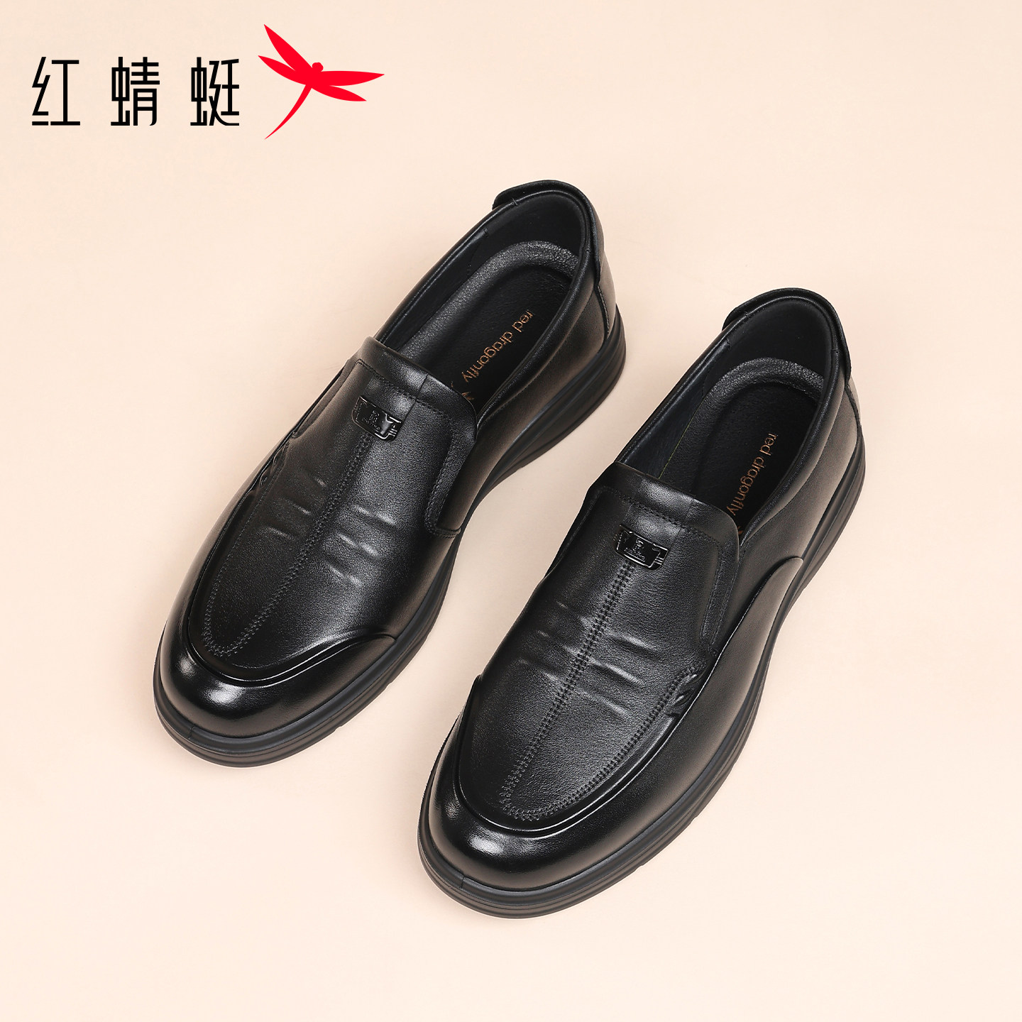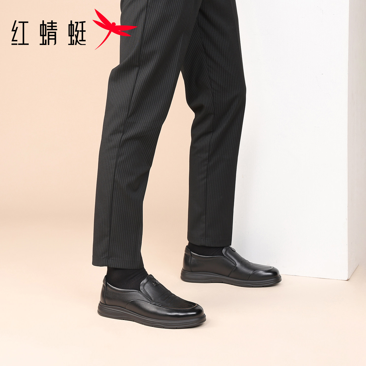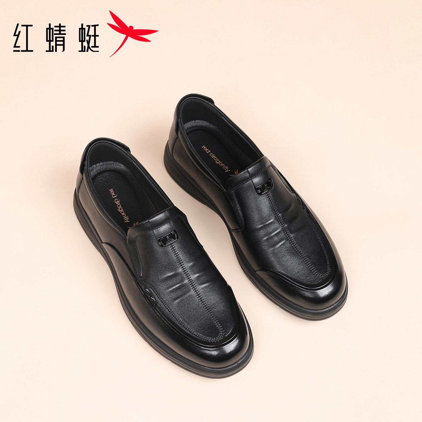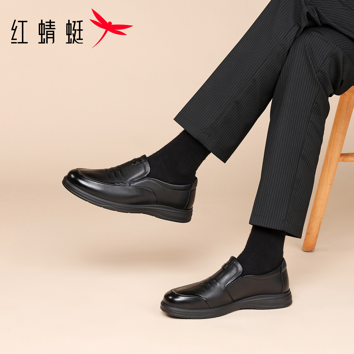 红蜻蜓男鞋秋冬加绒大码鞋子男士休闲一脚蹬皮鞋男真皮牛皮爸爸鞋