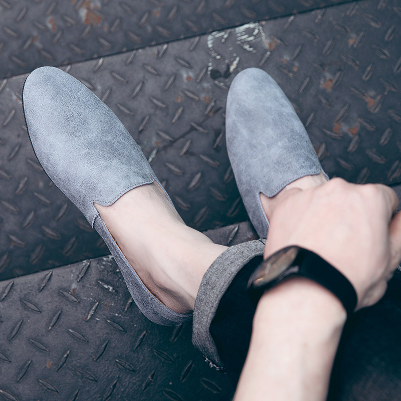 尖头休闲男皮鞋2025新款轻便软低真皮小码时尚潮流一脚蹬豆豆鞋男