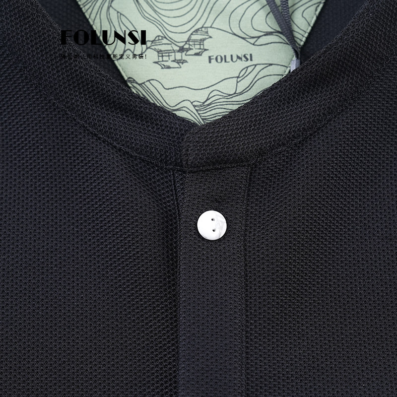 佛伦斯FOLUNSI男装上衣中式休闲半袖2024男士t恤短袖男夏季小立领