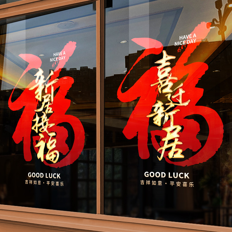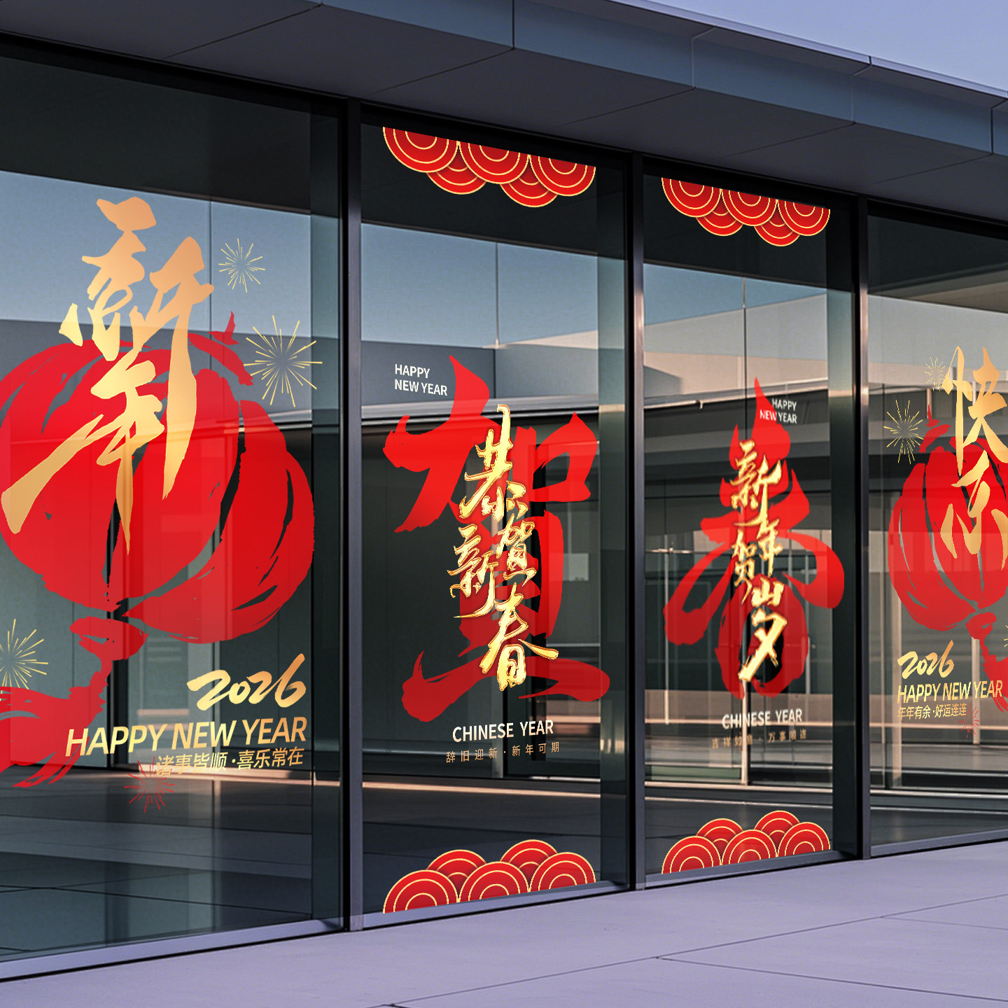 新年装饰福字窗花静电玻璃贴纸门贴场景布置氛围春节马年公司店铺