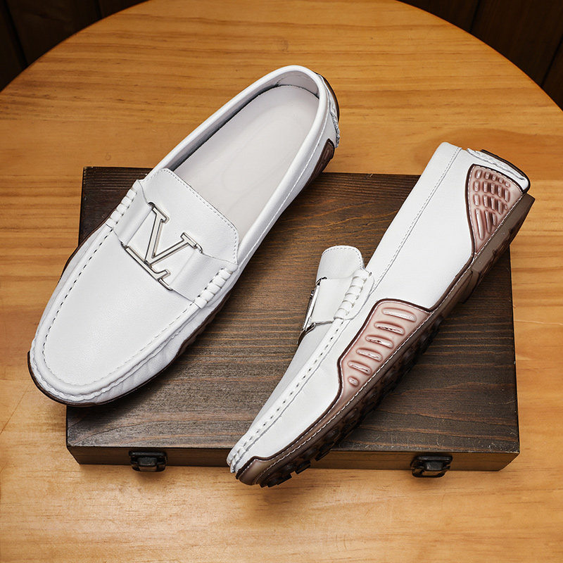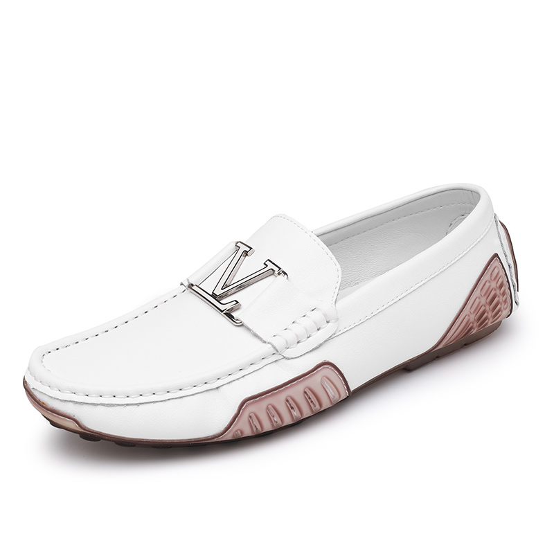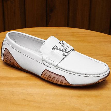 白色豆豆鞋男真皮软底韩版潮流百搭休闲皮鞋透气一脚蹬懒人开车鞋
