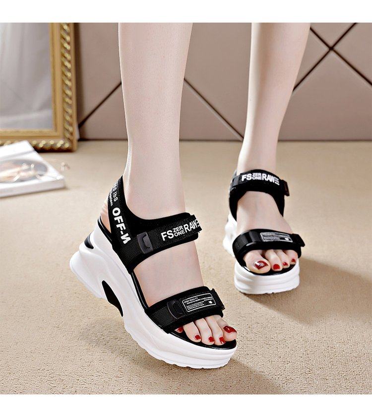 厚底夏季新款坡跟魔术贴运动凉鞋