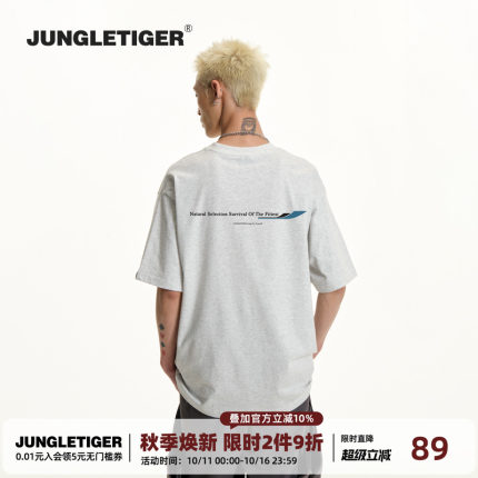 丛林老虎美式潮牌字母印花短袖t恤男女夏季宽松纯棉260g重磅半袖
