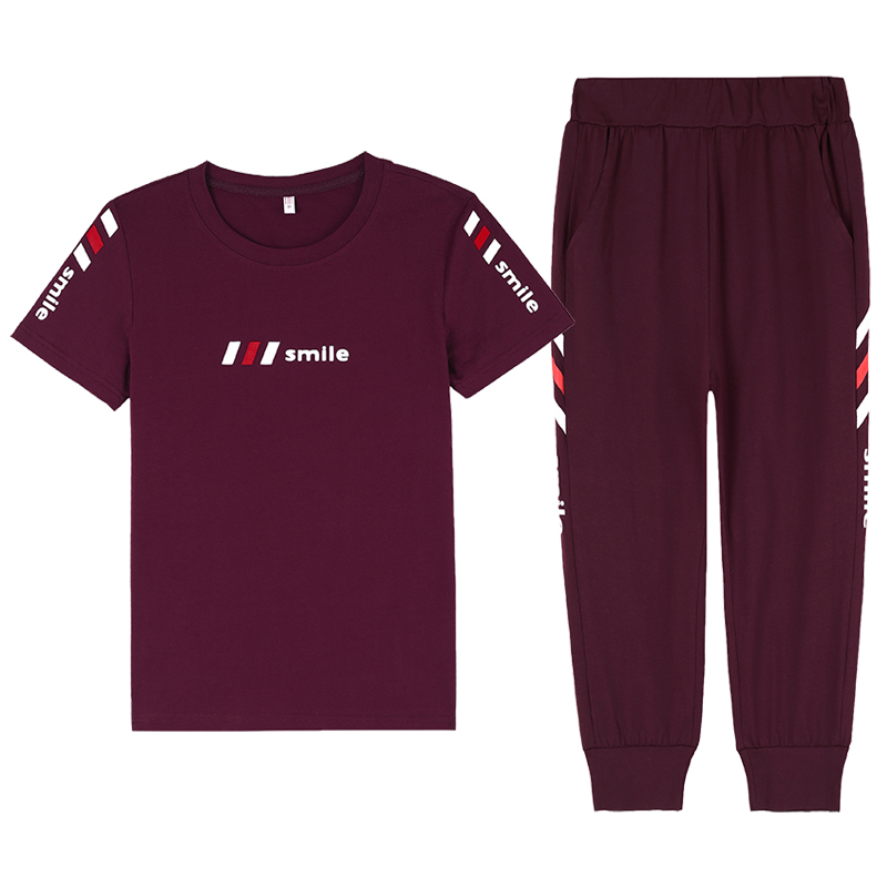 夏季运动服套装女薄款2023年新款中年妈妈洋气夏装纯棉短袖七分裤
