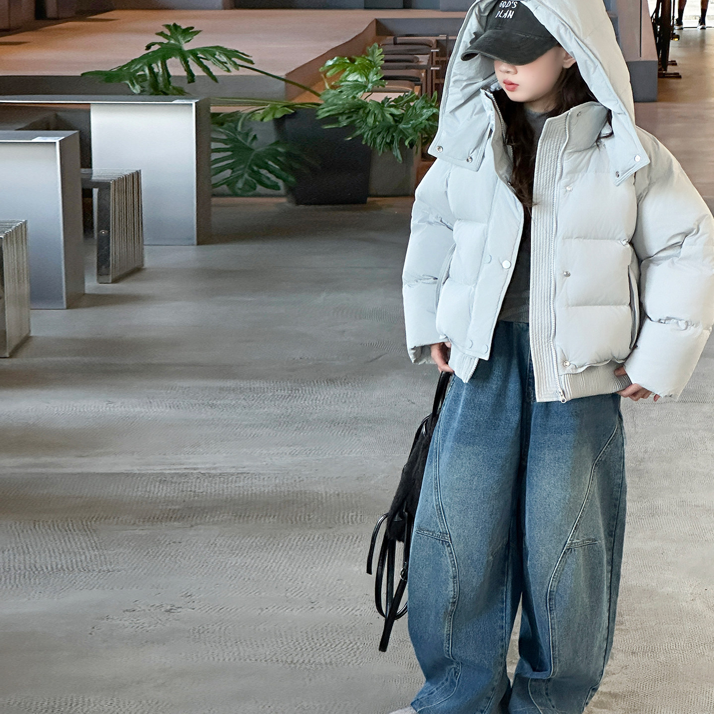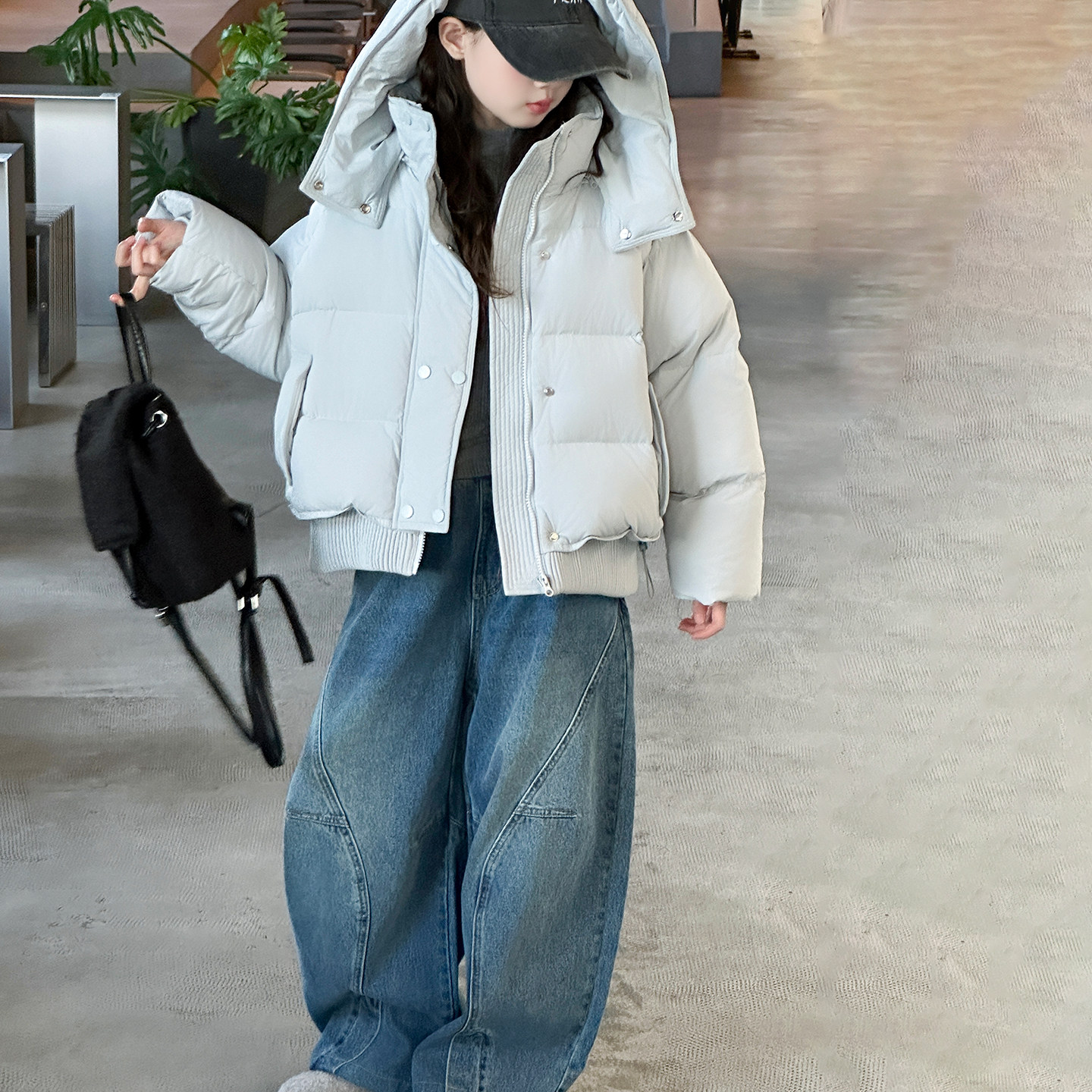 女童90羽绒服冬2025新款中大童连帽短款外套韩版新国标白鸭绒上衣