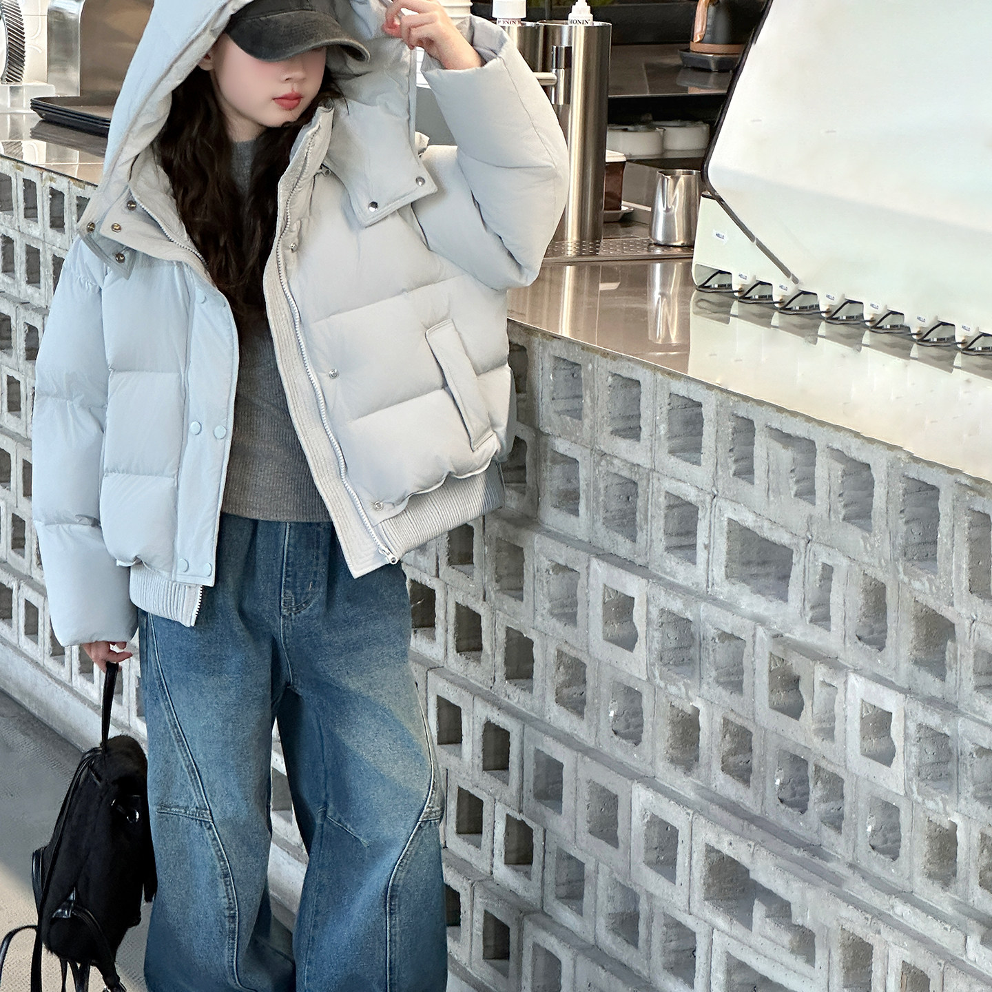 短款加厚女童连帽羽绒服90白鸭绒