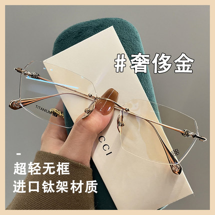 超轻钛架切边眼镜近视男款可配度数痞帅斯文无边框眼睛框架高级感