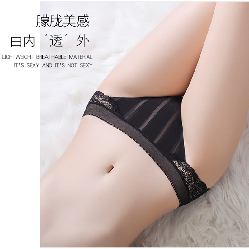 日系性感蕾丝无痕三角裤中腰棉裆大码透明网纱纯欲内裤女透气