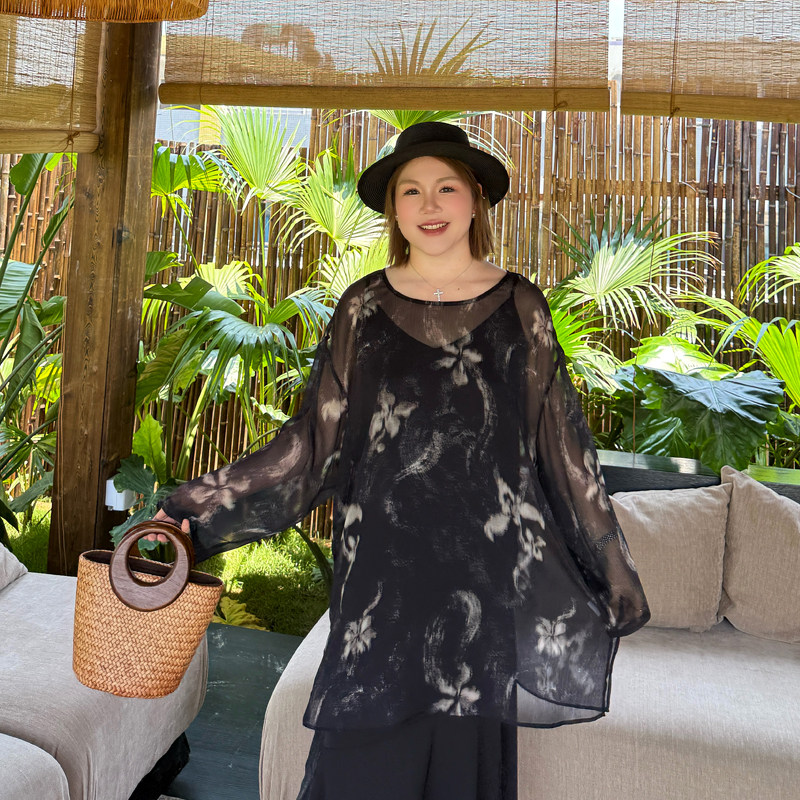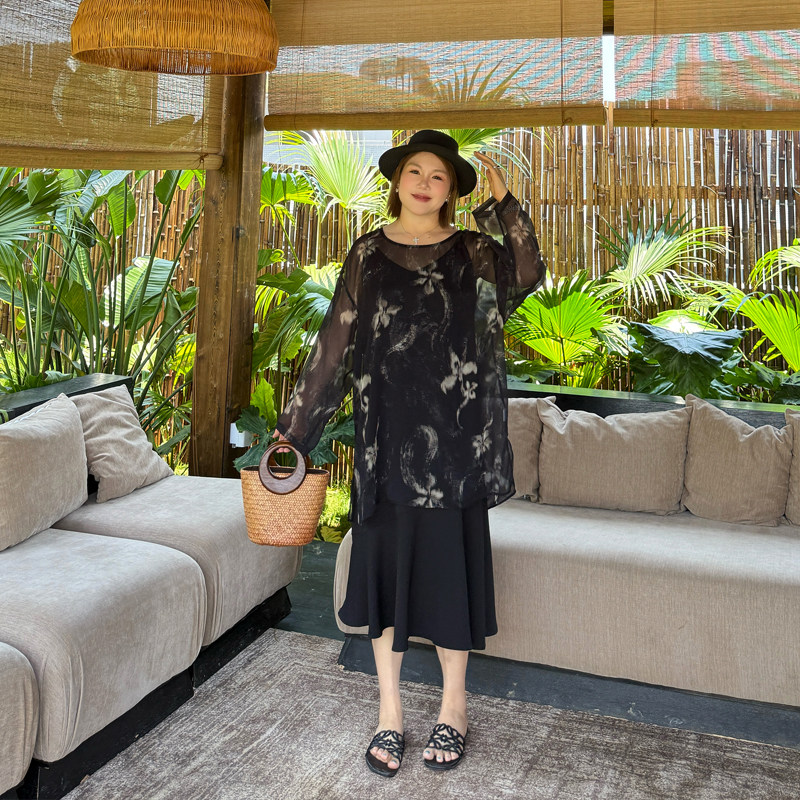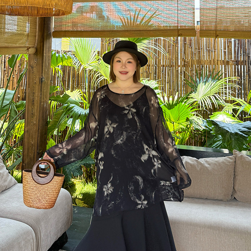 心存真大码女装复古雪纺t恤2025夏新款胖mm宽松空调上衣长袖罩衫