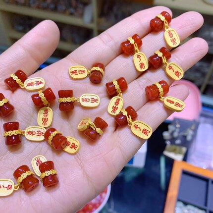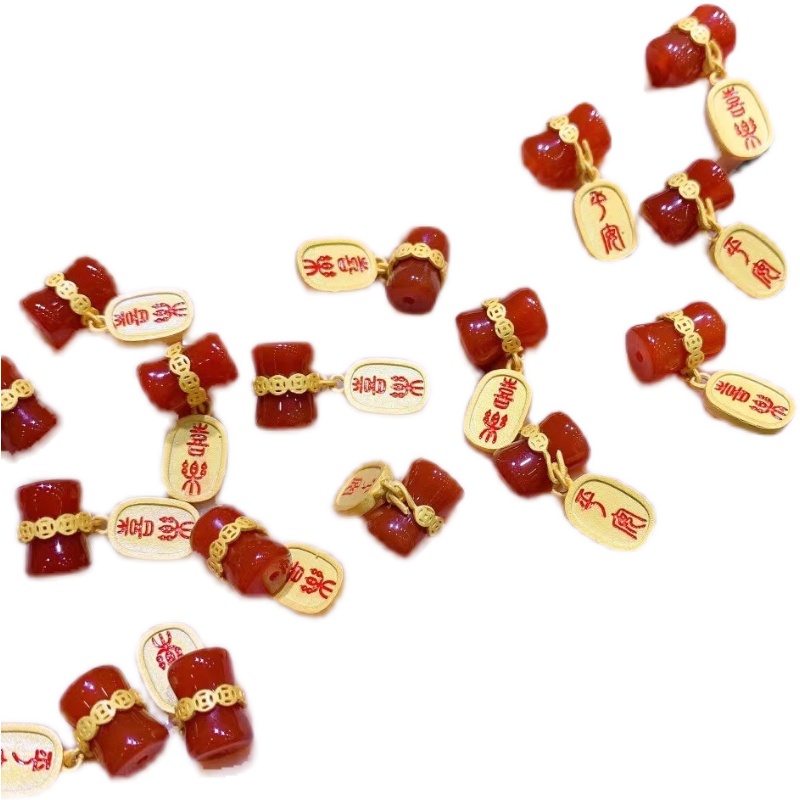 古法银平安喜乐吊坠包边镶嵌南红玛瑙桶珠隔珠手链编织配件