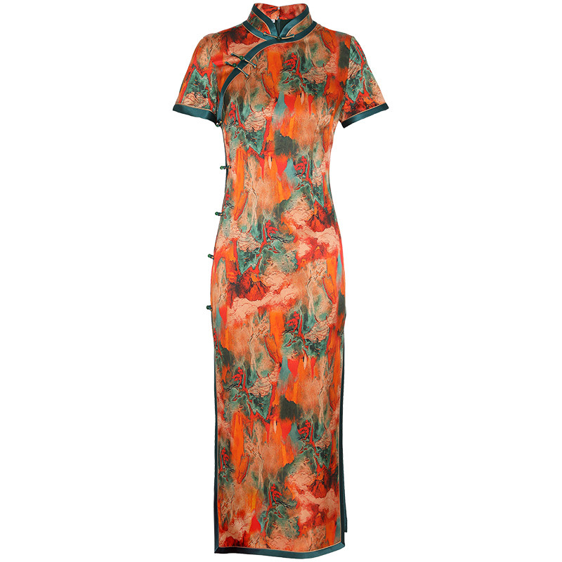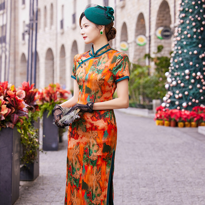 莹杉优雅日常长款桑蚕丝旗袍新款