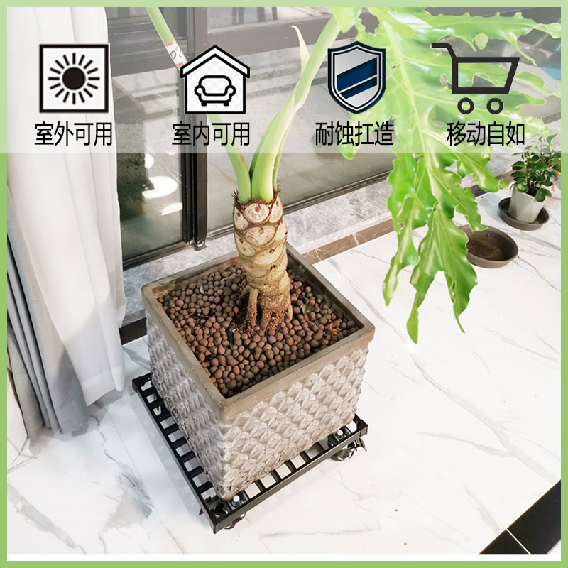 正方形承重加厚可移动花盆托盘带万向轮滚轮滑轮花架底座树脂底盘