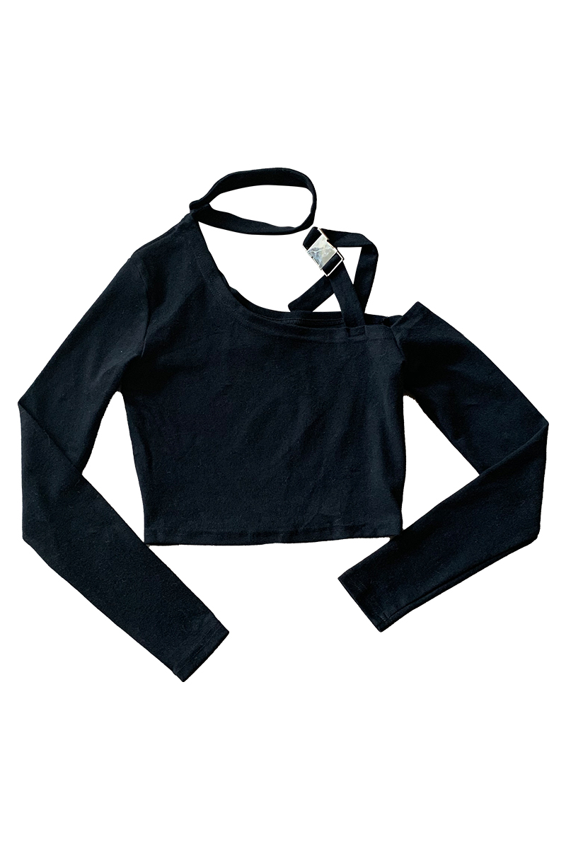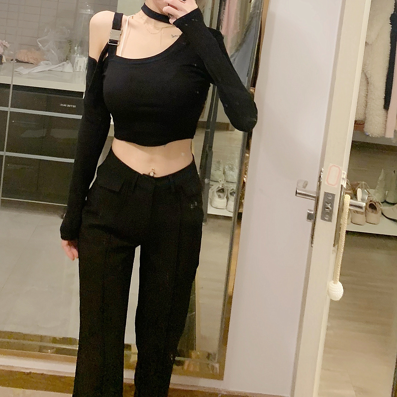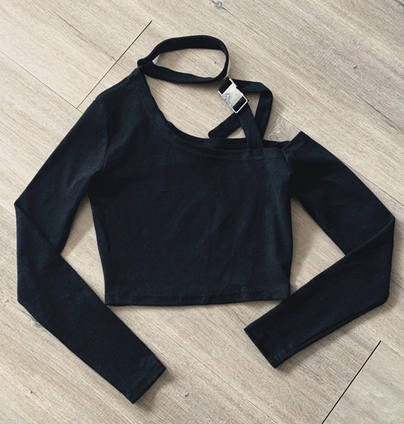 图图小有名气的长袖露肩性感高腰t恤上衣打底衫短款