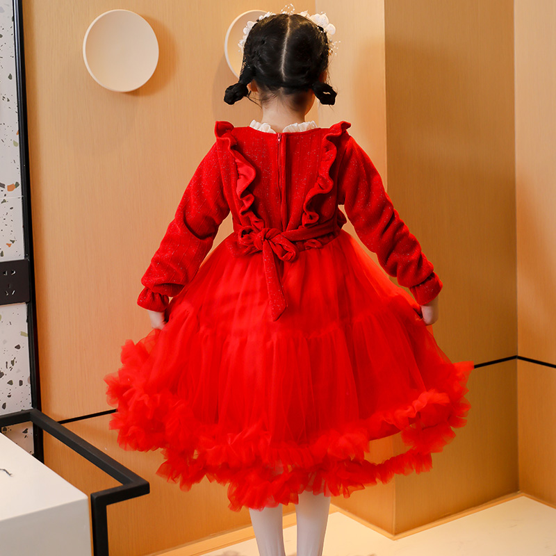 2025新款女童连衣裙春秋季花边蓬蓬裙女孩公主裙洋气礼服儿童生日