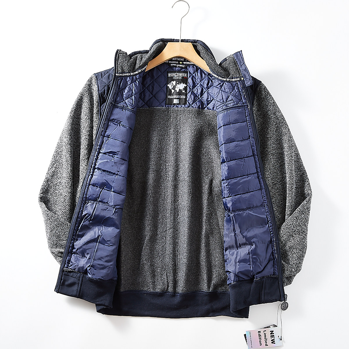 内里复合加绒! 小众G端线!外贸男装秋冬保暖立领拼接棉服外套潮