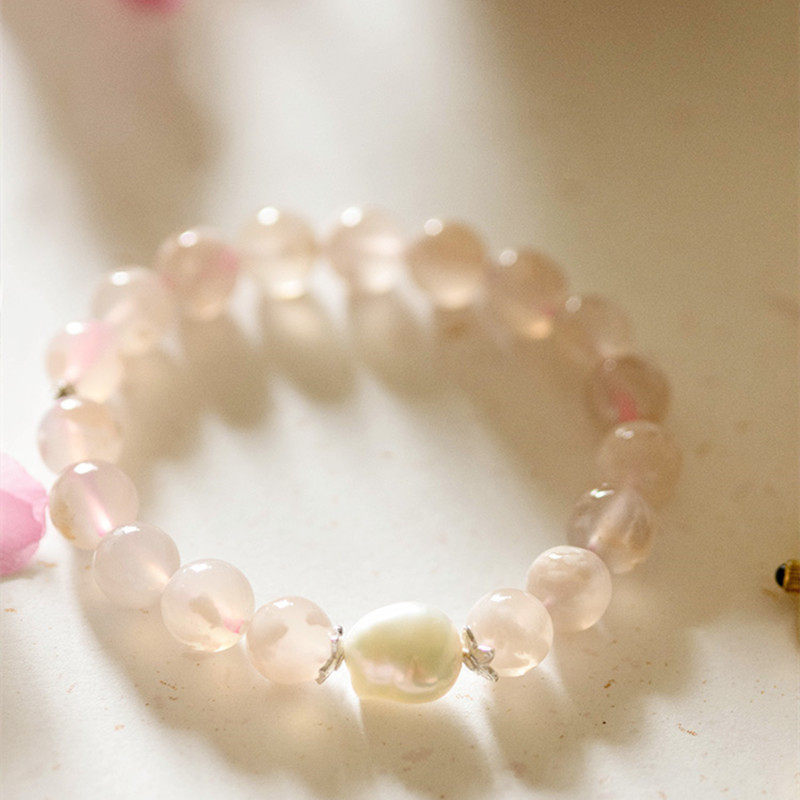 樱花玛瑙8mm手串粉色玉髓珍珠手